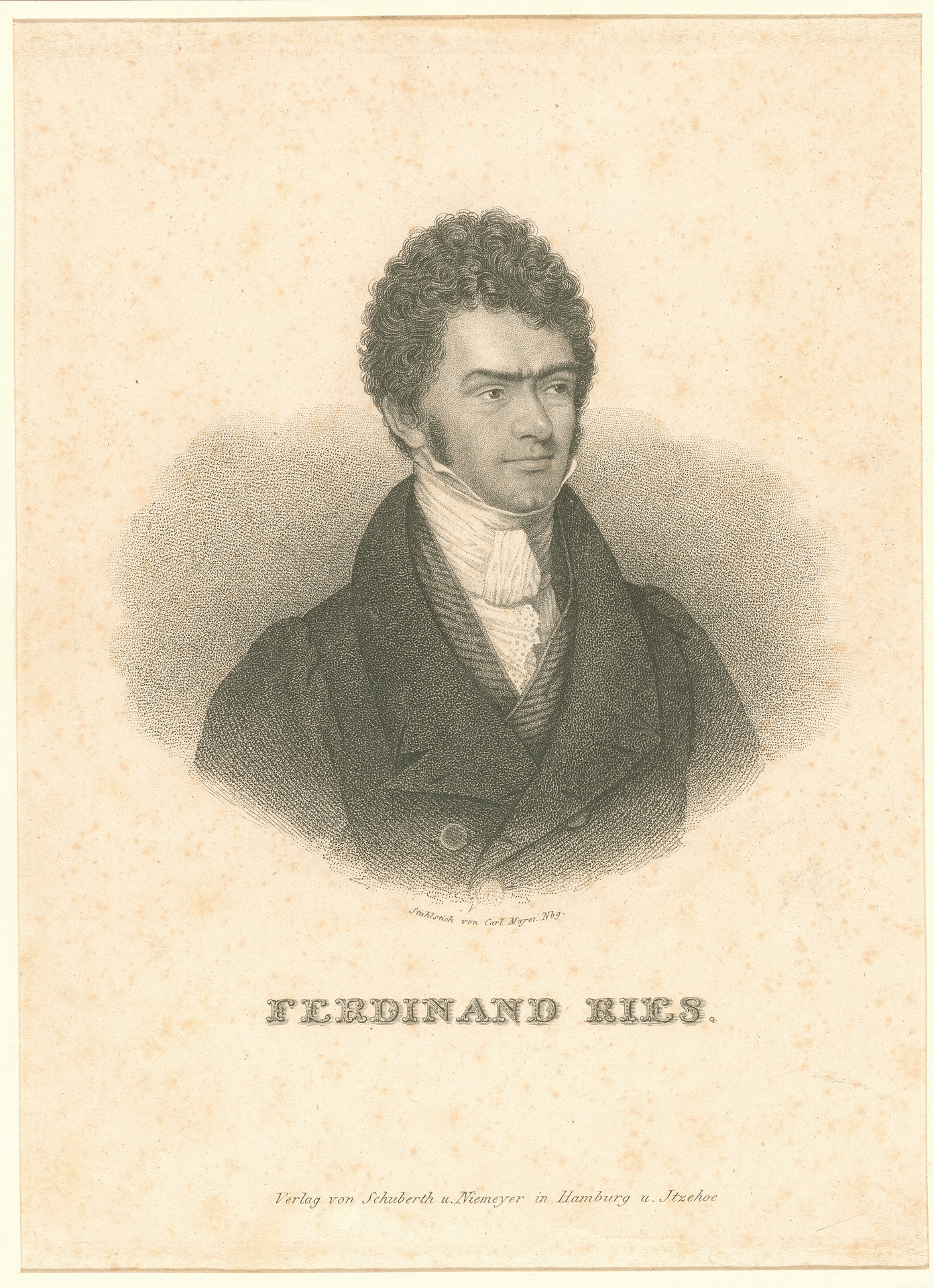 Ferdinand Ries (1784-1838) - Stahlstich von Carl Mayer, Nürnberg, gestaltet in Anlehnung an die Darstellung von Charles Picart, erschienen im Verlag Schuberth und Niemeyer, Hamburg und Itzehoe, um 1840?