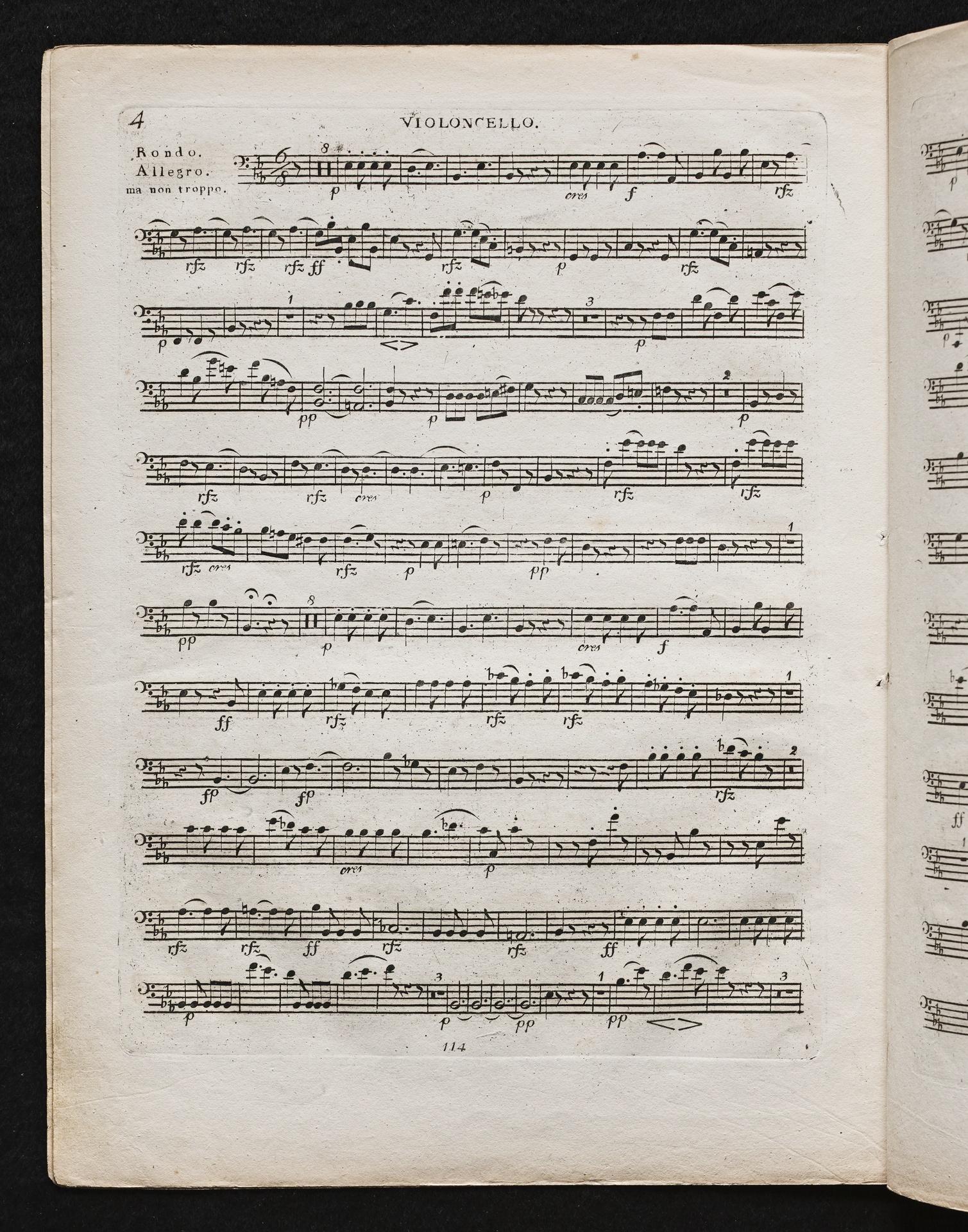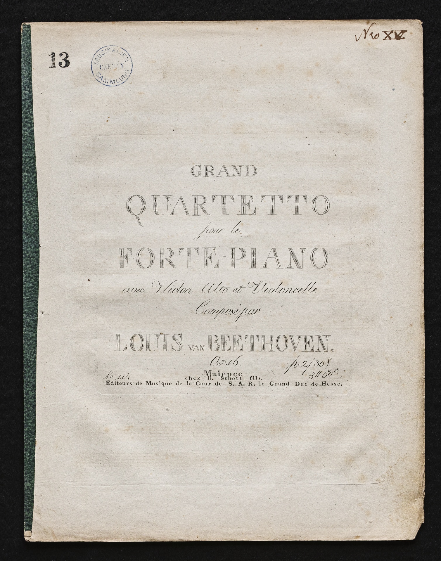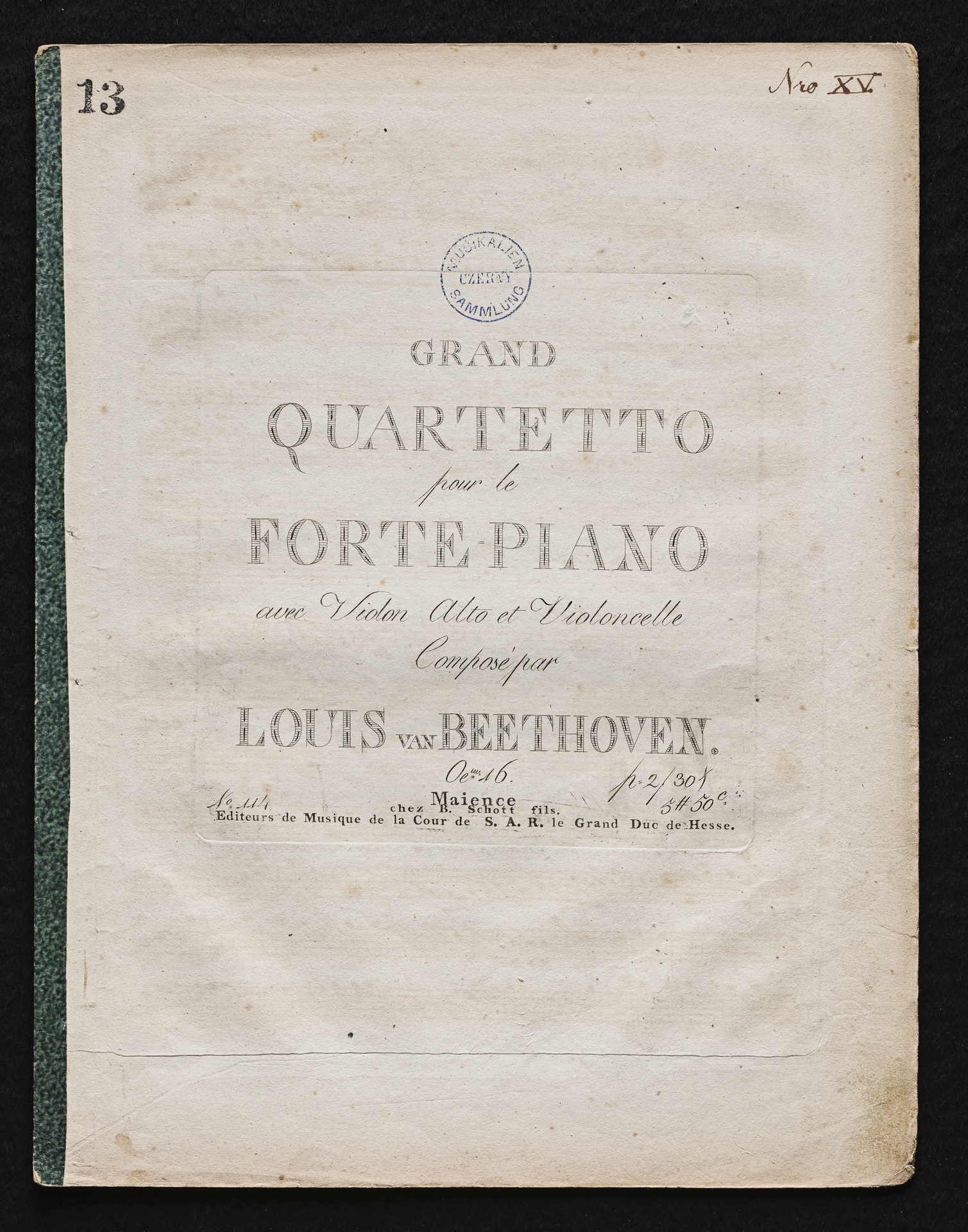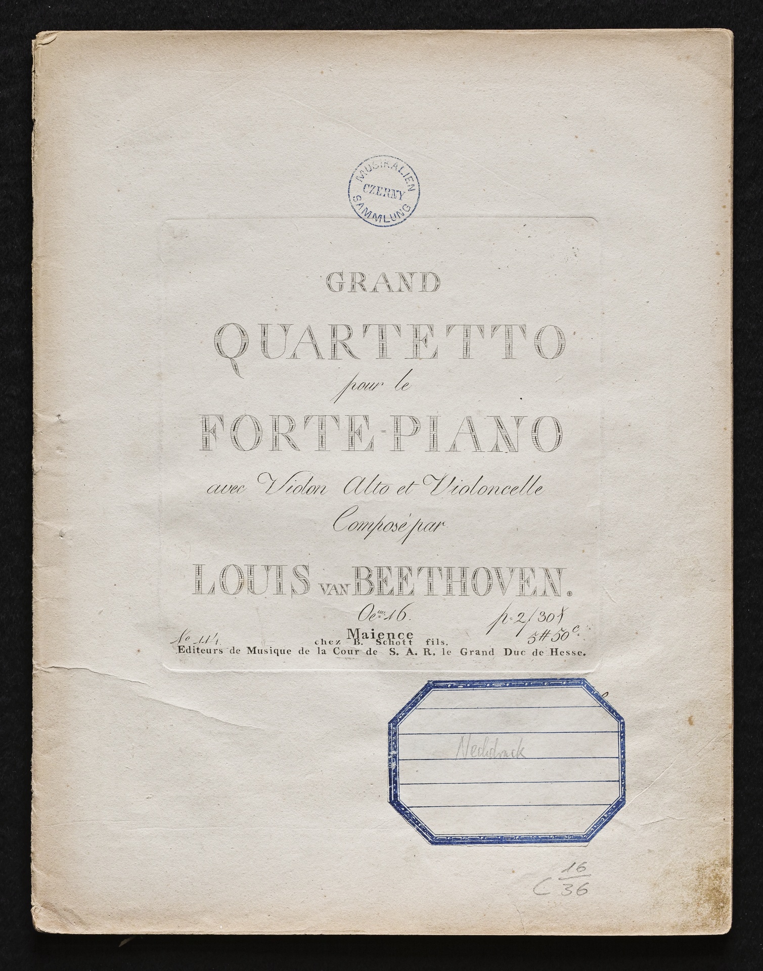 Ludwig van Beethoven, Quintett für Klavier, Oboe, Klarinette, Fagott und Horn (Es-Dur) op. 16, Fassung für Klavier, Violine, Viola, Violoncello, Stimmen, Schott, 114