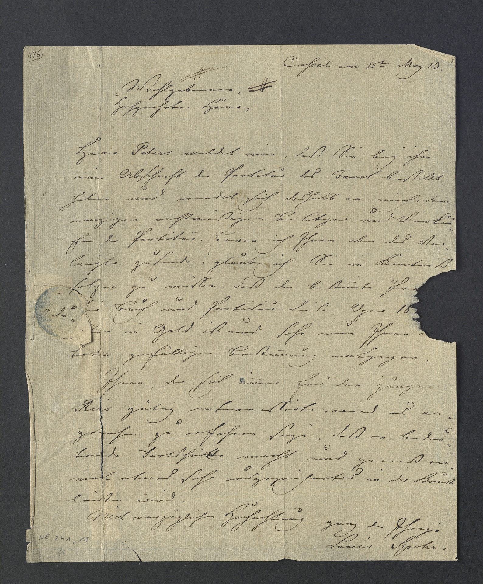 Louis Spohr, Brief an Nikolaus Simrock in Bonn, Kassel, 13. Mai 1823, Autograph
