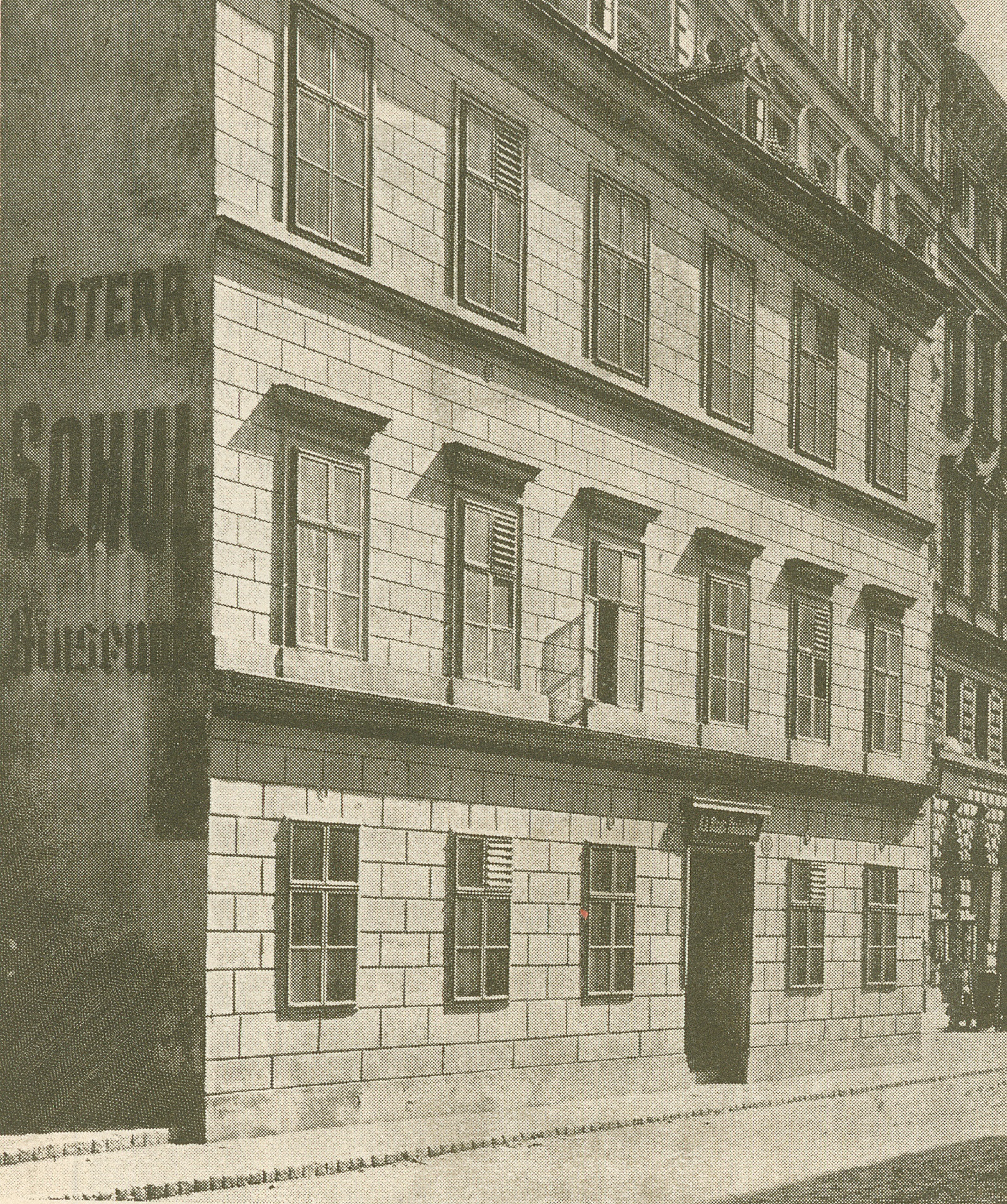 Wien, Alsergrund, Grünentorgasse 11, Schulhaus in der Rossau, Wohnung der Familie Schubert - Fotografie von August Stauda, um 1900, nicht bezeichnete Reproduktion, erschienen bei Georg Müller, München und Leipzig, 1913