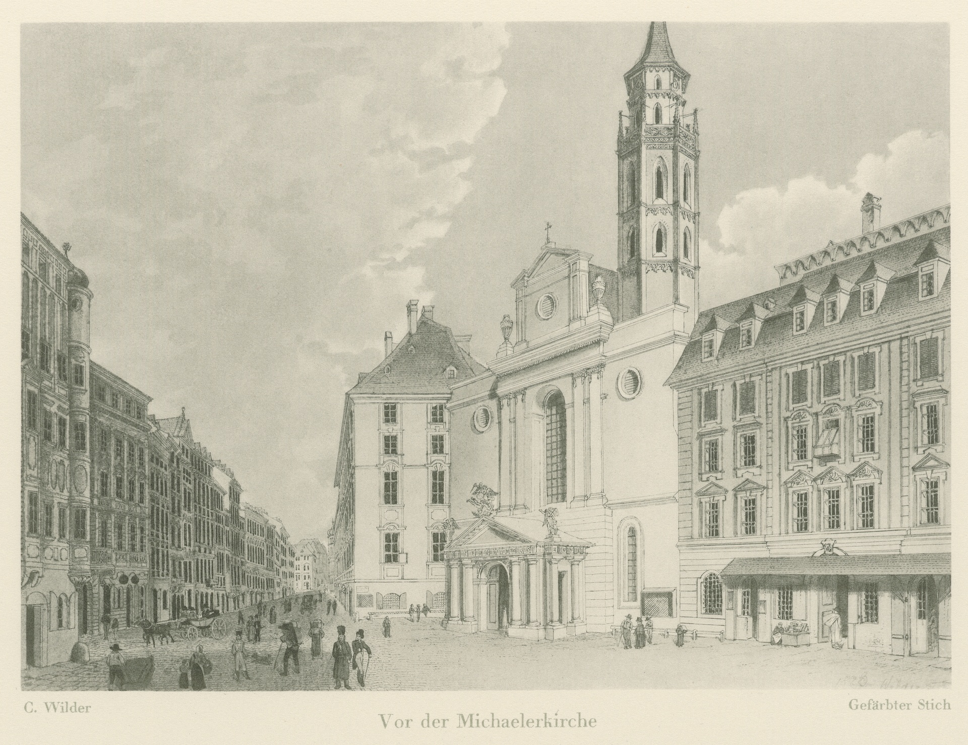 Die Michaelerkirche in Wien, 1828 - Reproduktion eines Stichs von Georg Christian Wilder, Wien, 1929