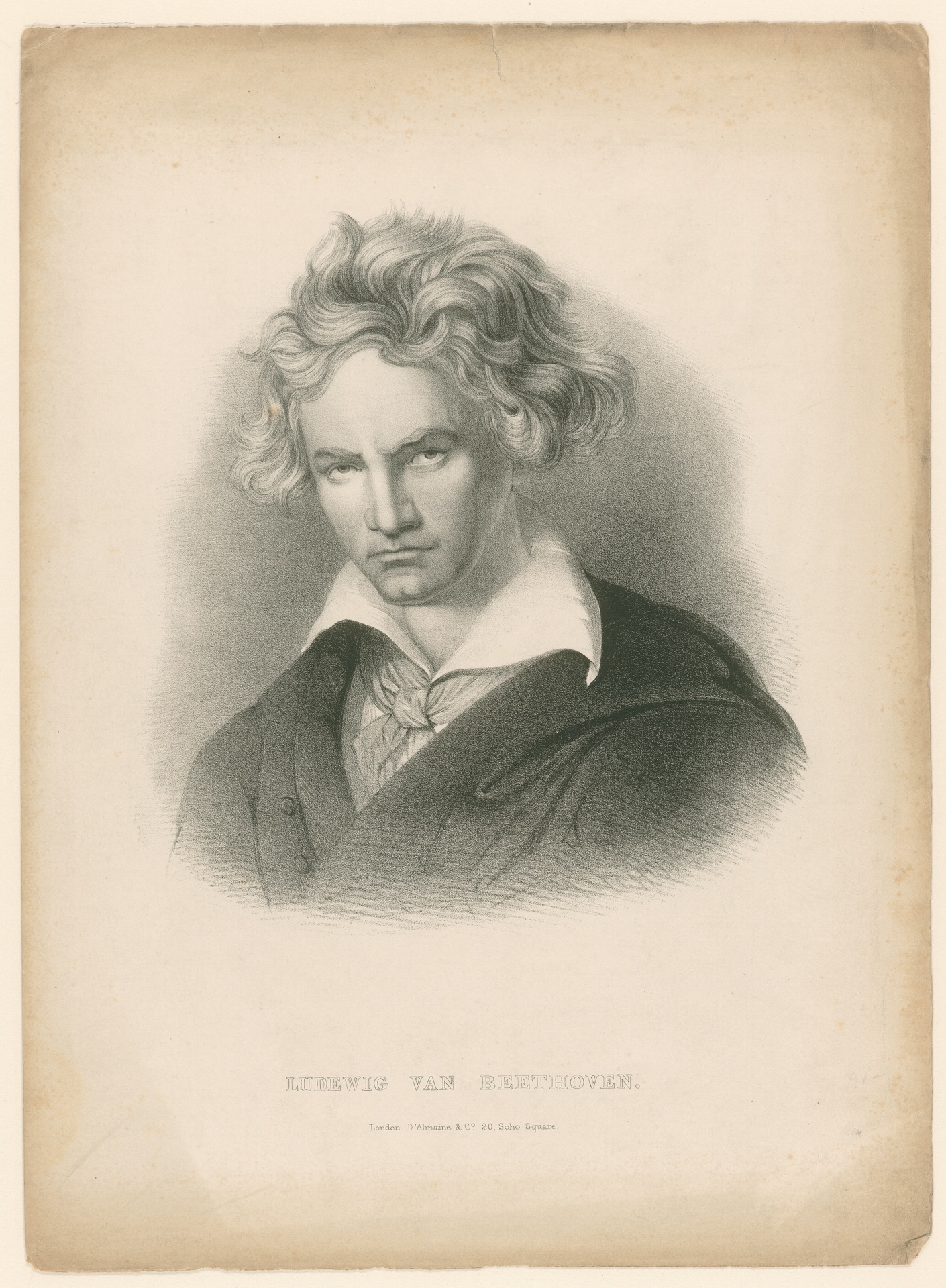 Ludwig van Beethoven - Lithographie nach dem Gemälde von Joseph Stieler aus dem Jahr 1820, erschienen bei D'Almaine, London, 2. Hälfte 19. Jahrhundert