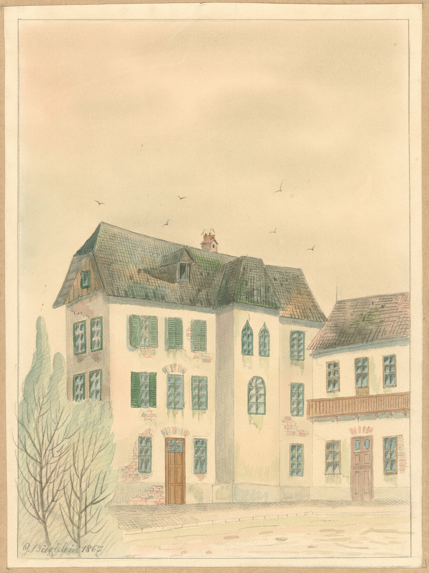 Koblenz, Wohnung der Familie von Breuning - Aquarell von Gottfried Bürklein