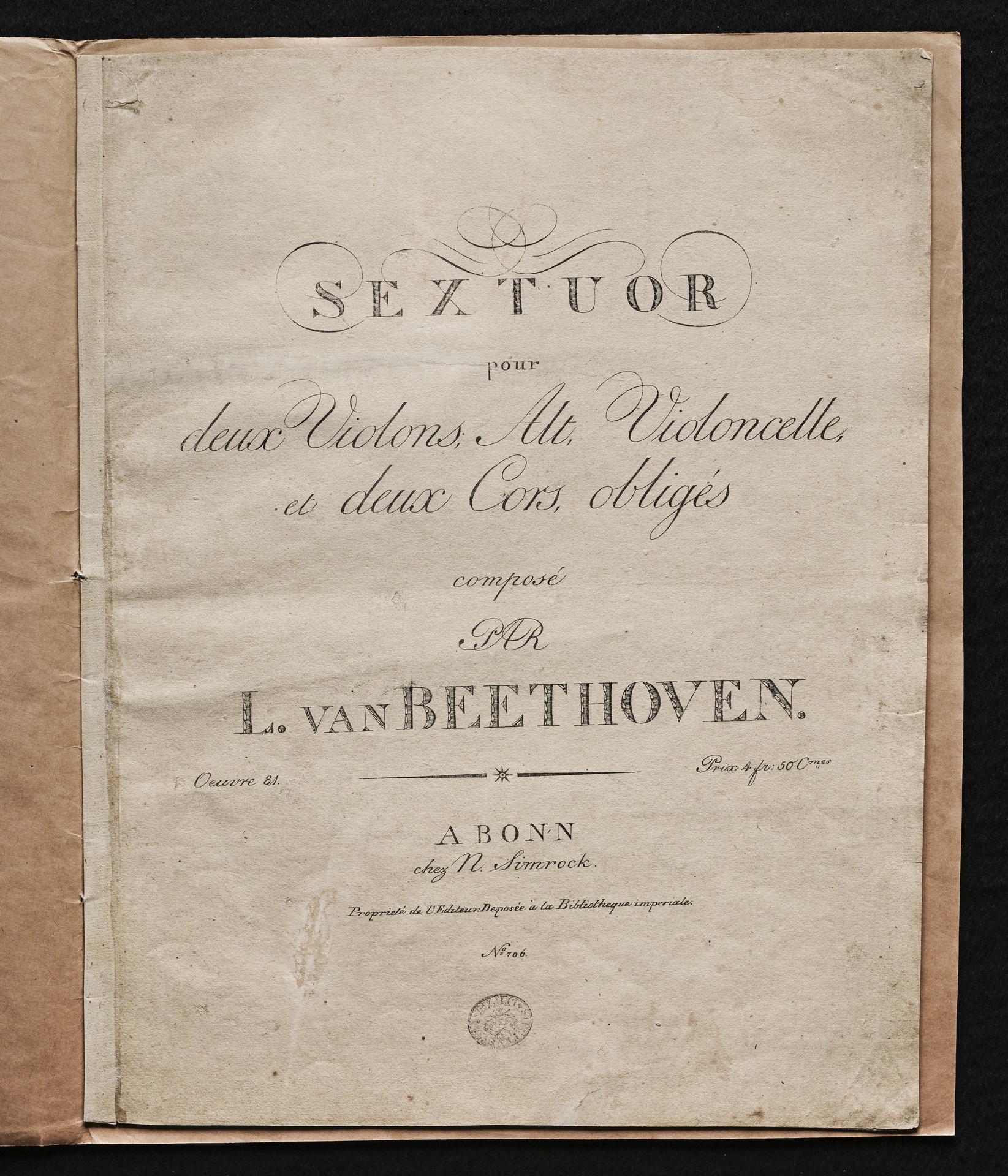 Ludwig van Beethoven, Sextett für 2 Violinen, Viola, Violoncello und 2 Hörner (Es-Dur) op. 81b, Stimmen, Simrock, 706