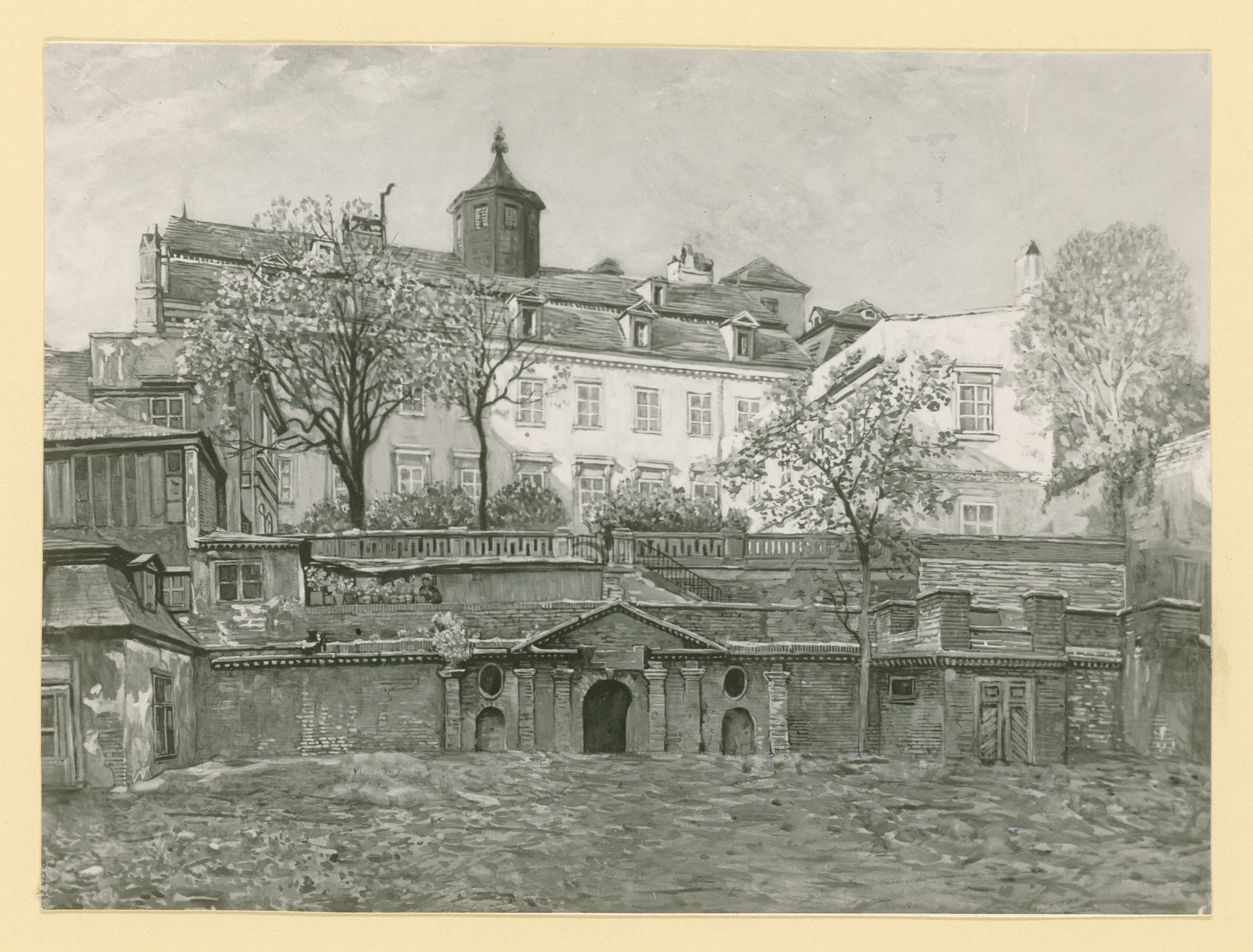 Wien, Landstraße, Erdbergerstr. 98, Wohnung der Familie Birkenstock - Gemälde von Eduard Ameseder vom Ende des 19. Jahrhunderts, anonyme Fotografie, Wien, um 1930?