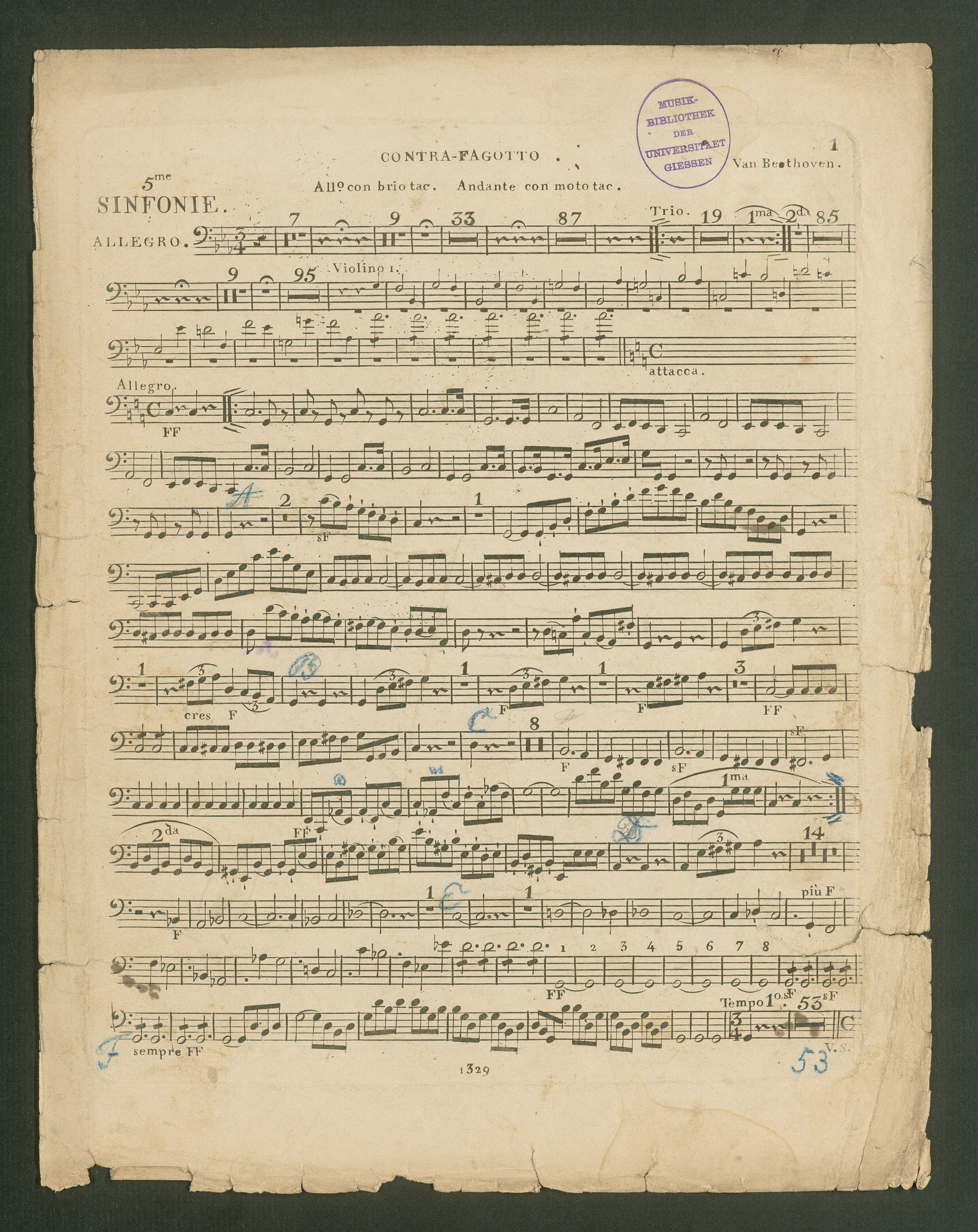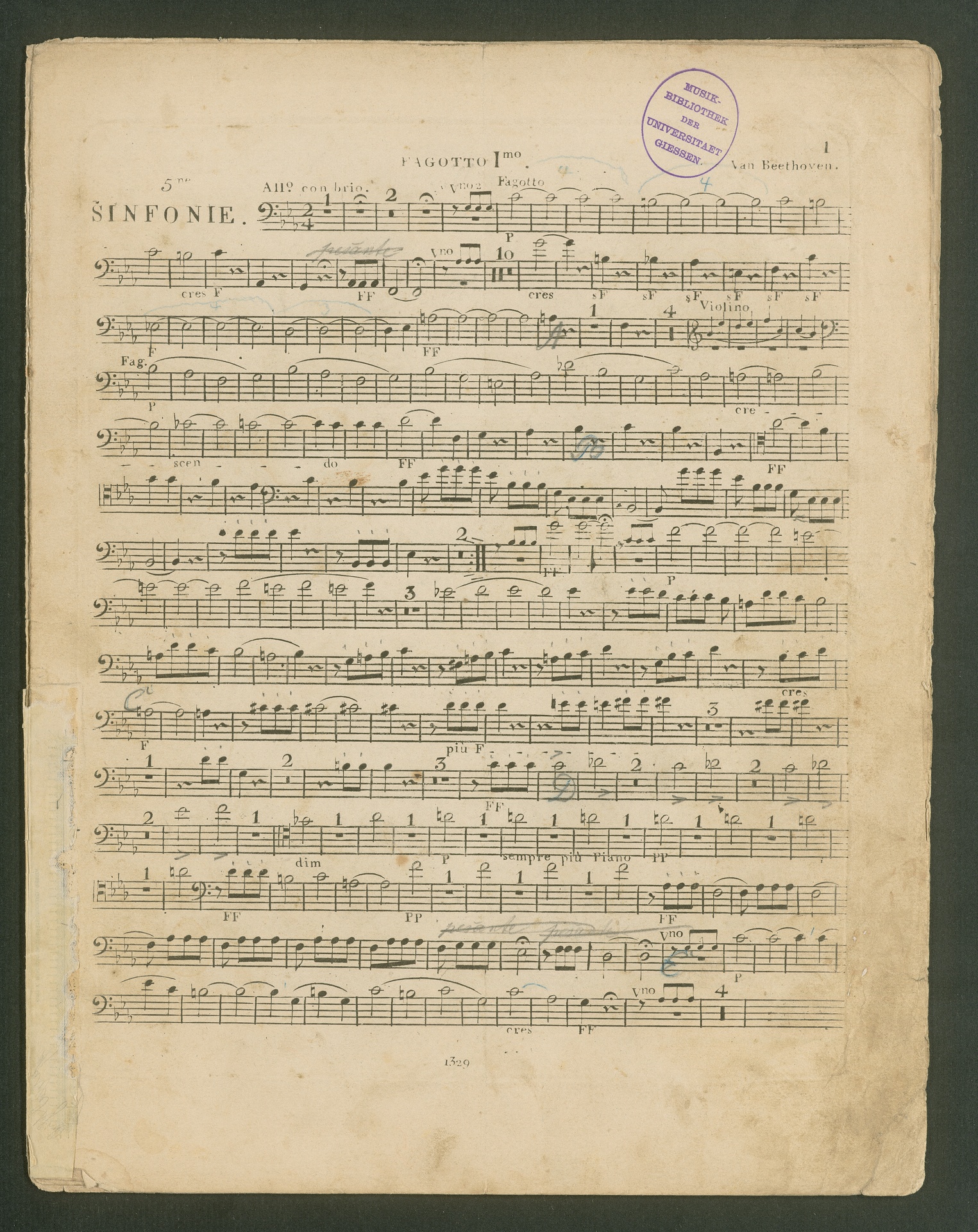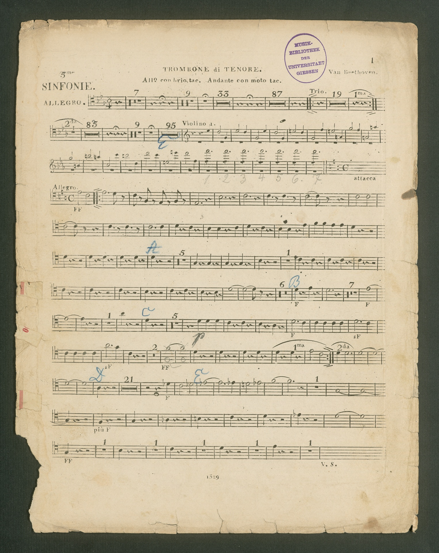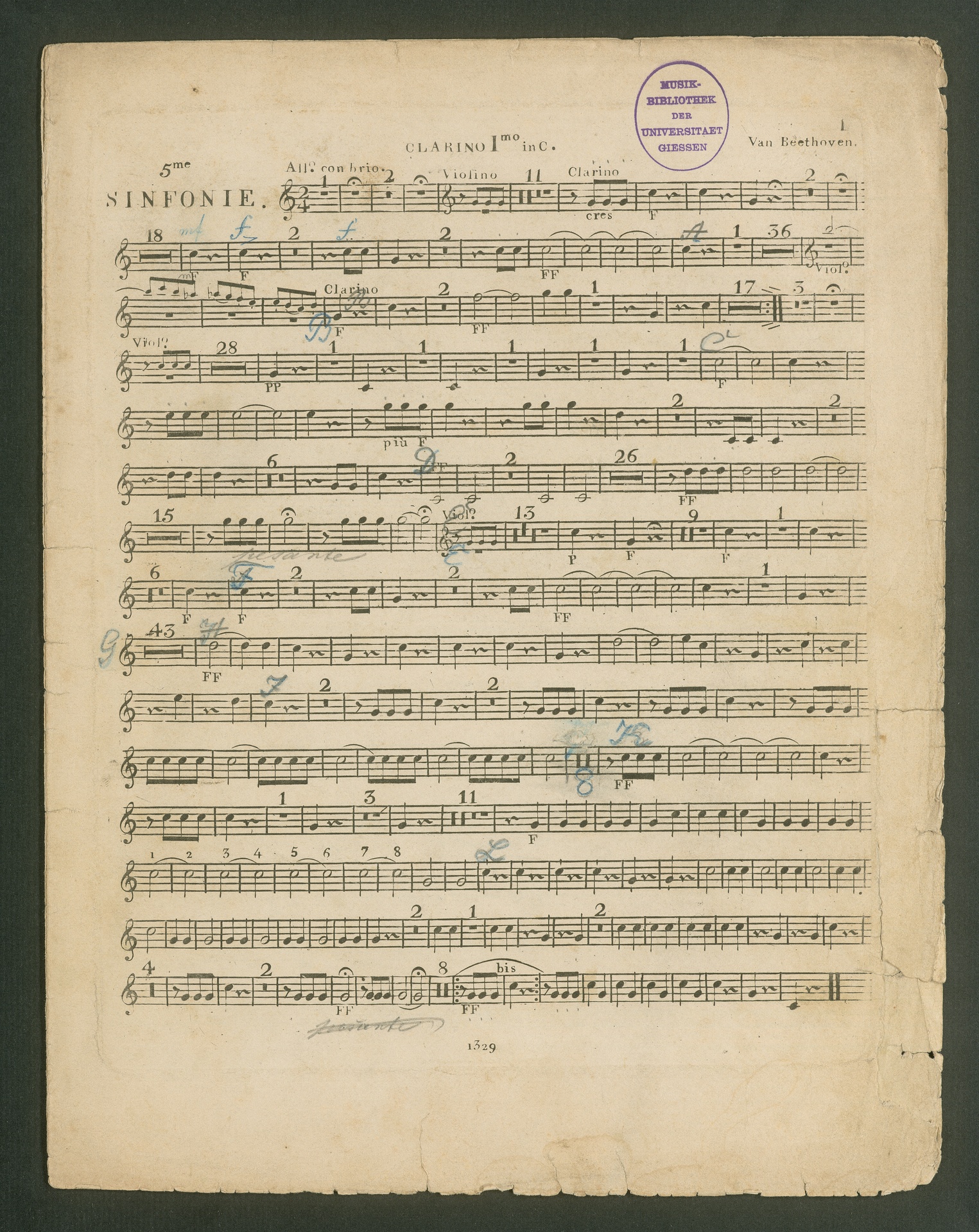 Ludwig van Beethoven, Sinfonie Nr. 5 (c-Moll) op. 67, Stimmen, Breitkopf und Härtel, 1329