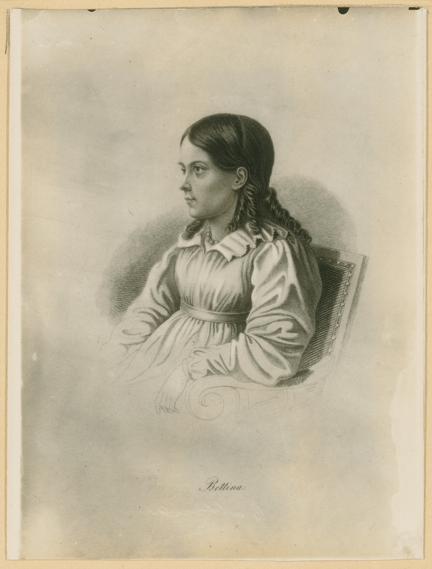 Bettina von Arnim (1785-1859) - anonymer Stahlstich, wohl aus der ersten Hälfte des 19. Jahrhunderts, Fotografie, Bonn, um 1895?