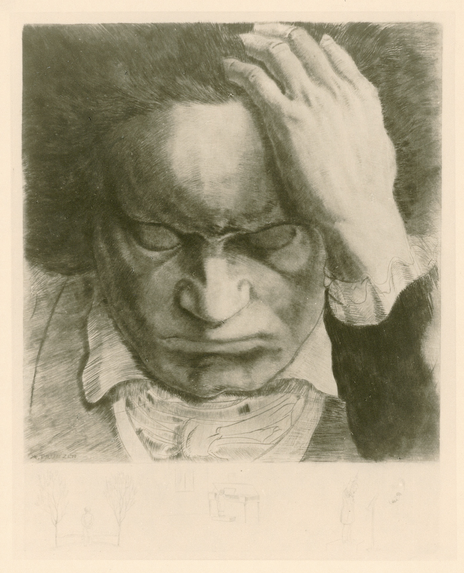 Ludwig van Beethoven - Zeichnung von Arthur Paunzen aus der Mitte des 20. Jahrhunderts, Reproduktion, um 1950?