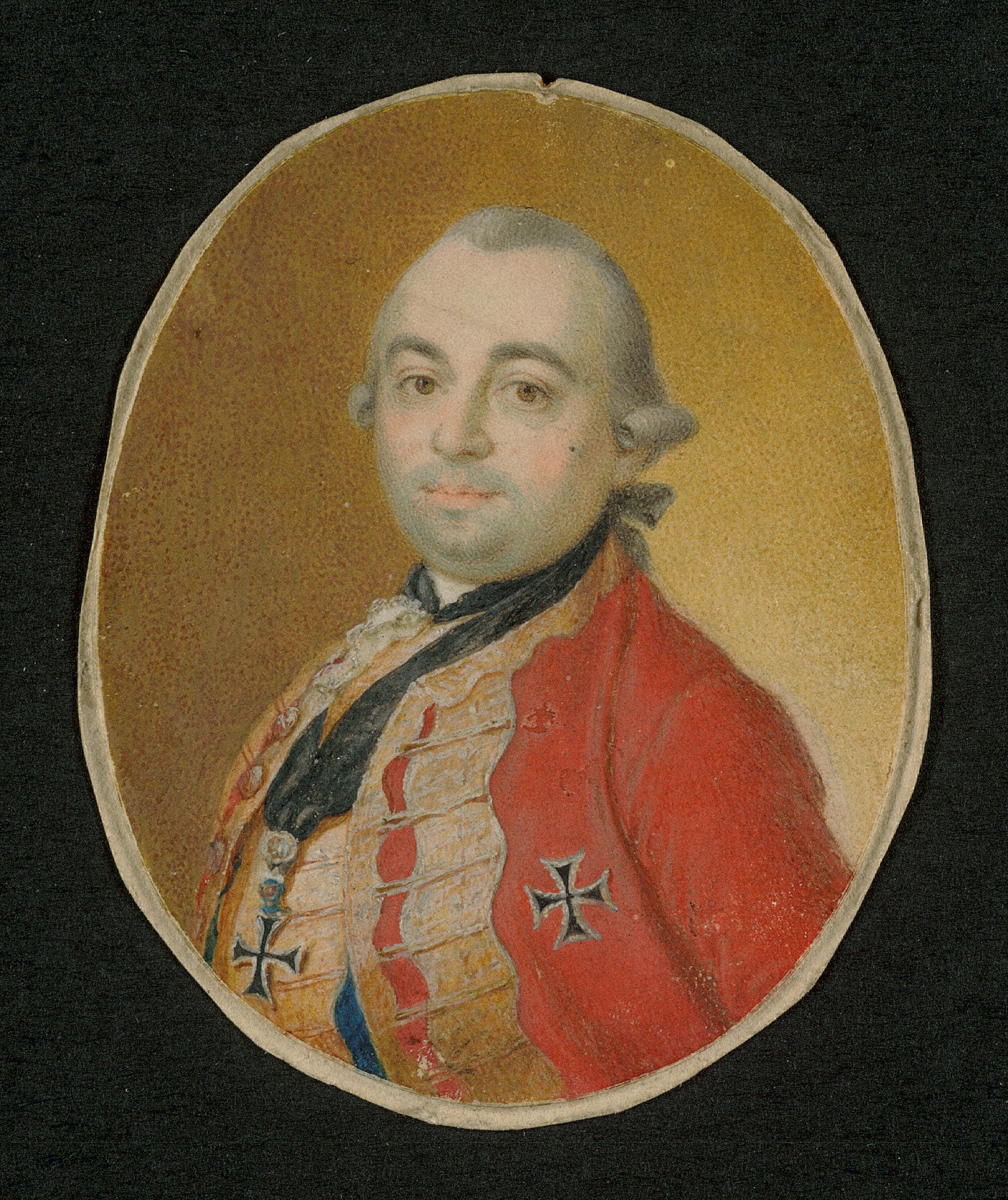 Bei dem hier dargestellten Herrn, dessen Identität bisher nicht bekannt ist, handelt es sich um einen Ritter des Deutschen Ordens, vermutlich um einen Landkomtur. Die Miniatur stammt aus dem Besitz der Familie Wegeler. Ursprünglich dürfte sie Eigentum der Bonner Familie von Breuning gewesen sein, die über Generationen hinweg dem Deutschen Orden eng verbunden war. Mitglieder dieser Familie bekleideten hohe Ämter innerhalb des Deutschen Ordens, allein viermal das Amt des Kanzlers. Auch Beethovens Jugendfreund Stephan von Breuning (1777-1827) war in den Jahren 1796 bis 1803 in Bad Mergentheim und in Wien für die Regierung des Ordens tätig.