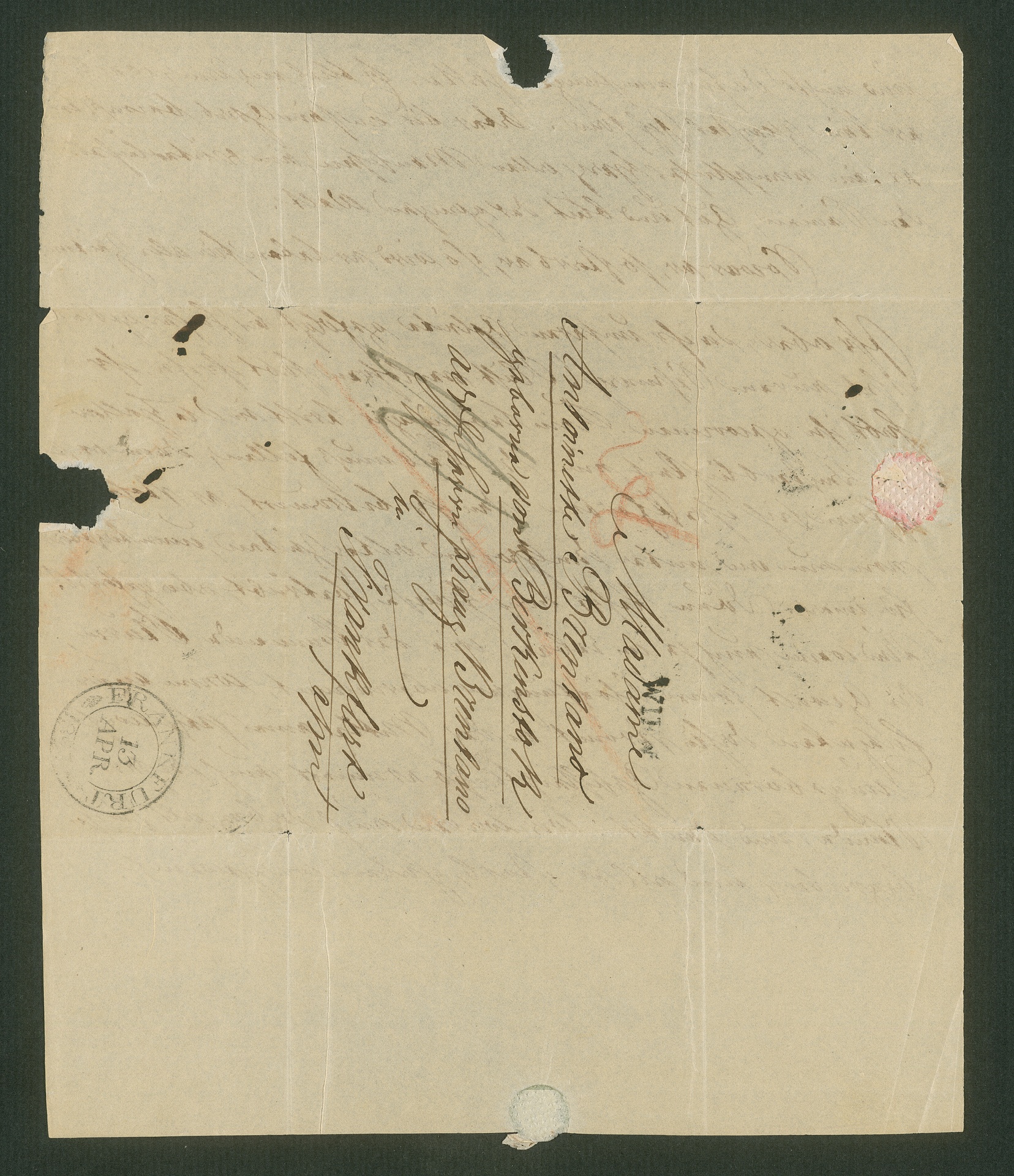 Moritz Trenck von Tonder, Brief an Antonia Brentano in Frankfurt am Main mit einer Abschrift der Grabrede "Bey Beethovens Leichenbegängnis" von Franz Grillparzer, Wien, 7. April 1827, Autograph