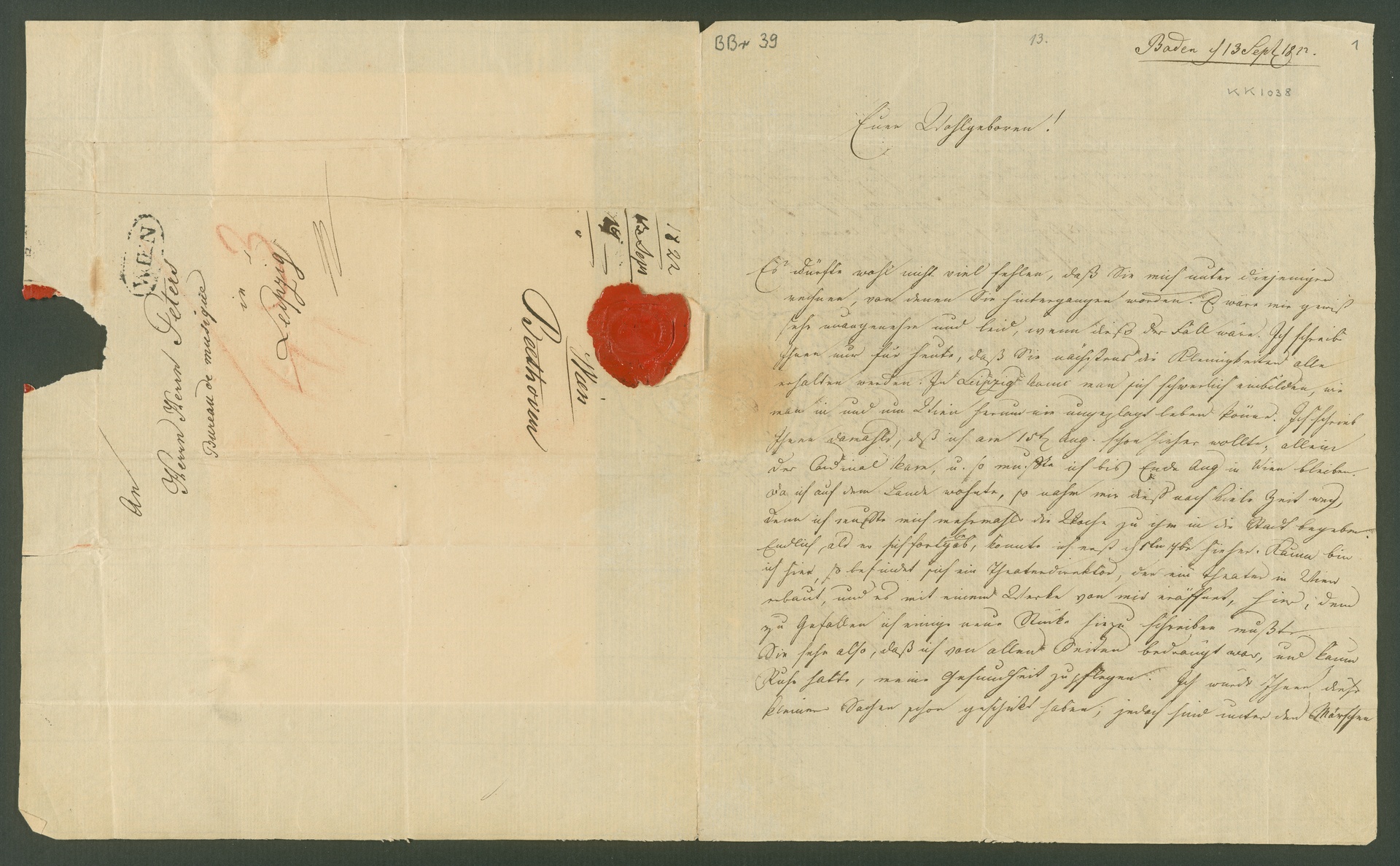 Ludwig van Beethoven, Brief an Carl Friedrich Peters in Leipzig, Baden, 13. September 1822