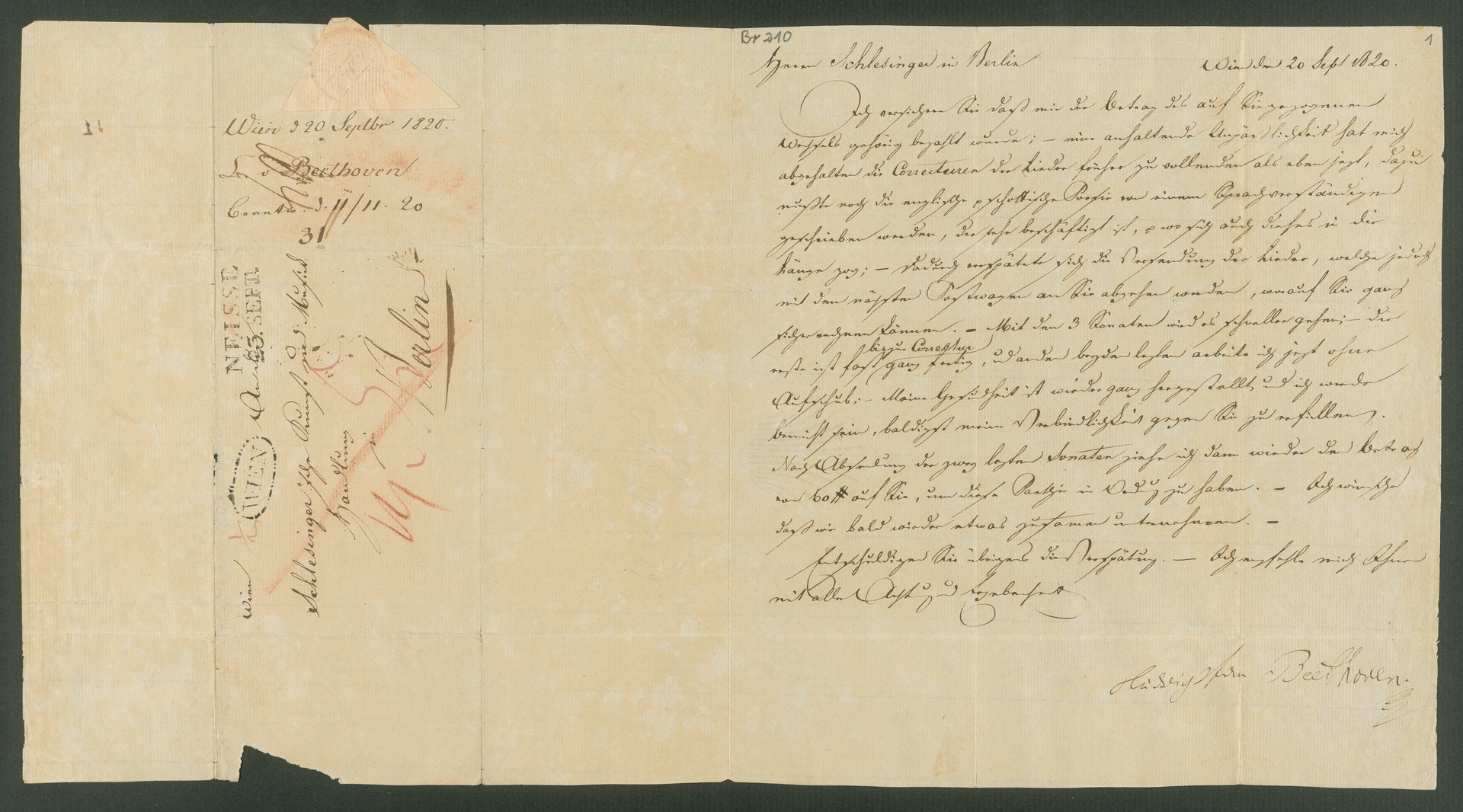 Ludwig van Beethoven, Brief an Adolph Martin Schlesinger in Berlin, Wien, 20. September 1820