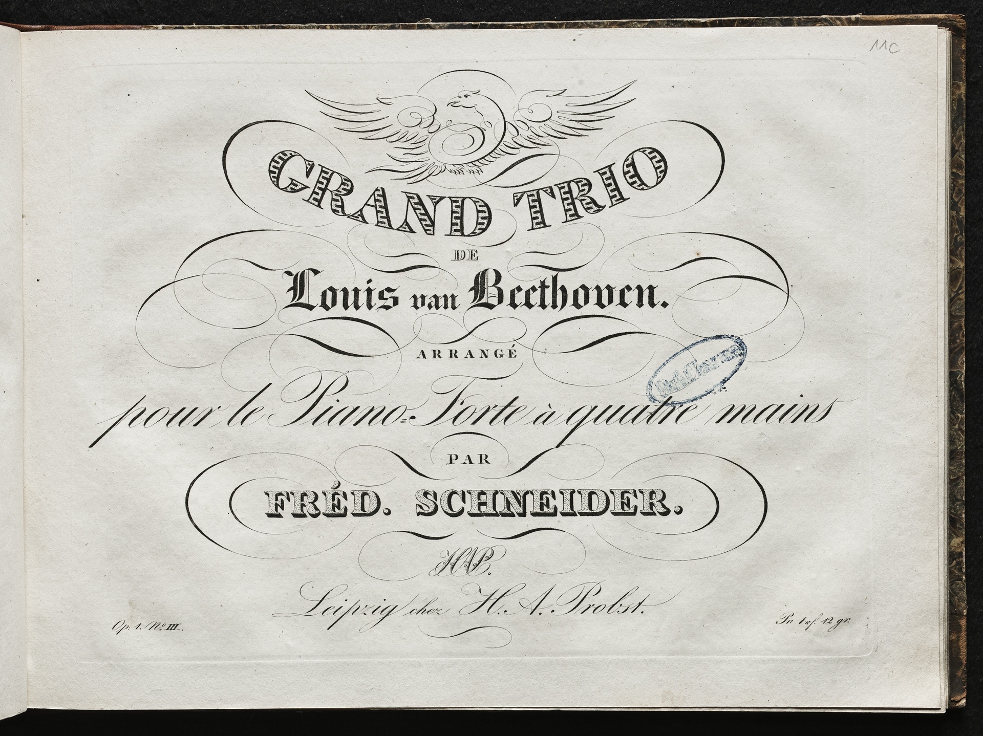 Ludwig van Beethoven, Trio für Klavier, Violine, Violoncello (c-Moll) op. 1, 3, Bearbeitung für Klavier zu 4 Händen von Friedrich Schneider, Probst 86