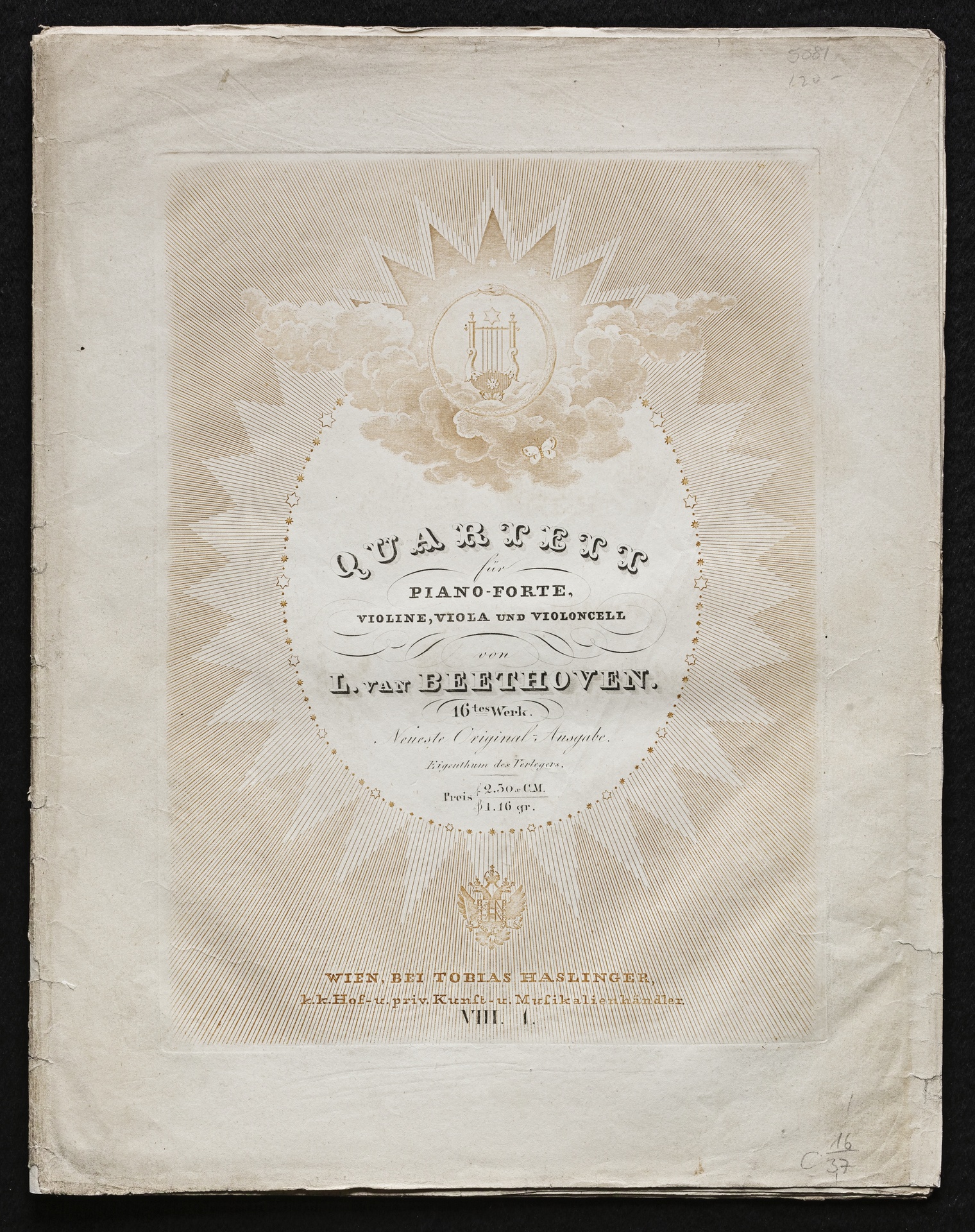 Ludwig van Beethoven, Quintett für Klavier, Oboe, Klarinette, Fagott und Horn (Es-Dur) op. 16, Fassung für Klavier, Violine, Viola, Violoncello, Stimmen, Haslinger