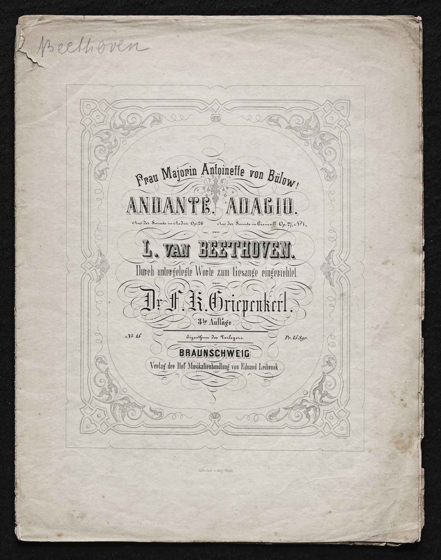 Ludwig van BeethovenFriedrich Conrad Griepenkerl, Sonate für Klavier (As-Dur) und Sonate für Klavier (cis-Moll) op. 26, 1. Satz und op. 27, 2 (Sonata quasi una fantasia), 1. Satz, Bearbeitungen für Singstimme und Klavier von Friedrich Conrad Griepenkerl, Leibrock, 15