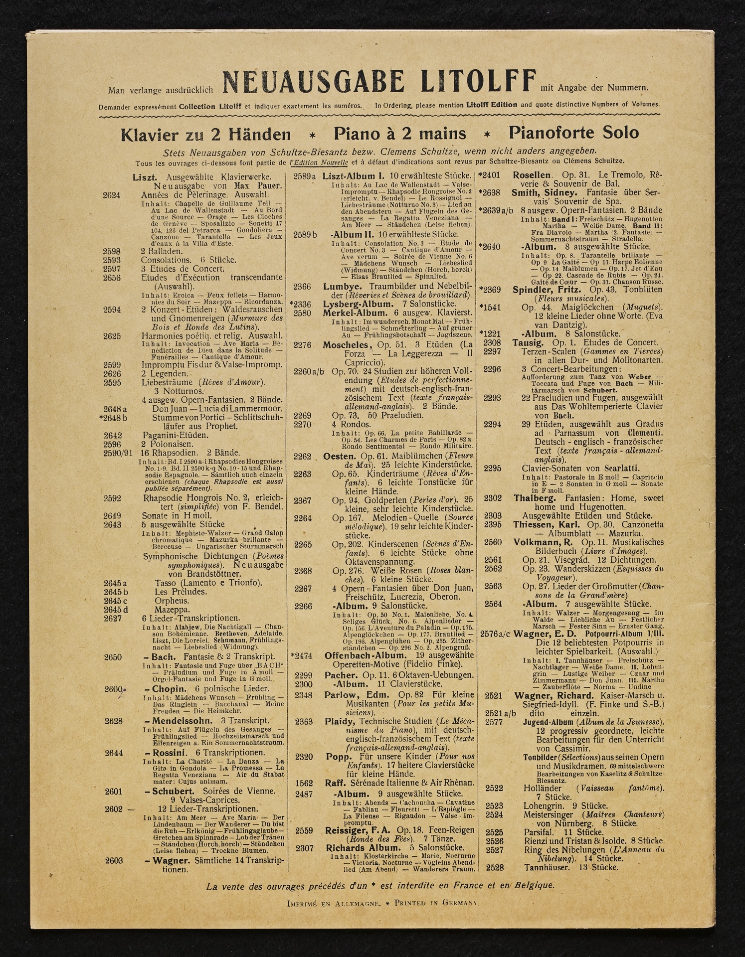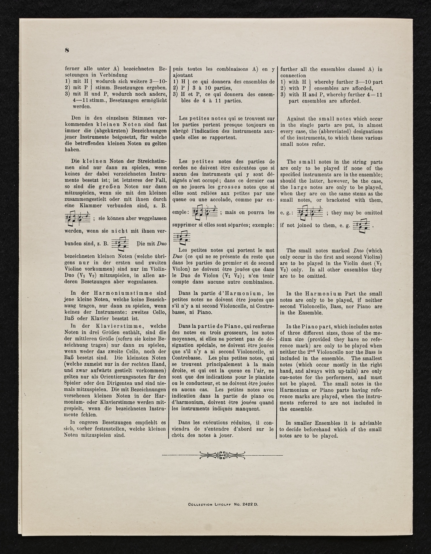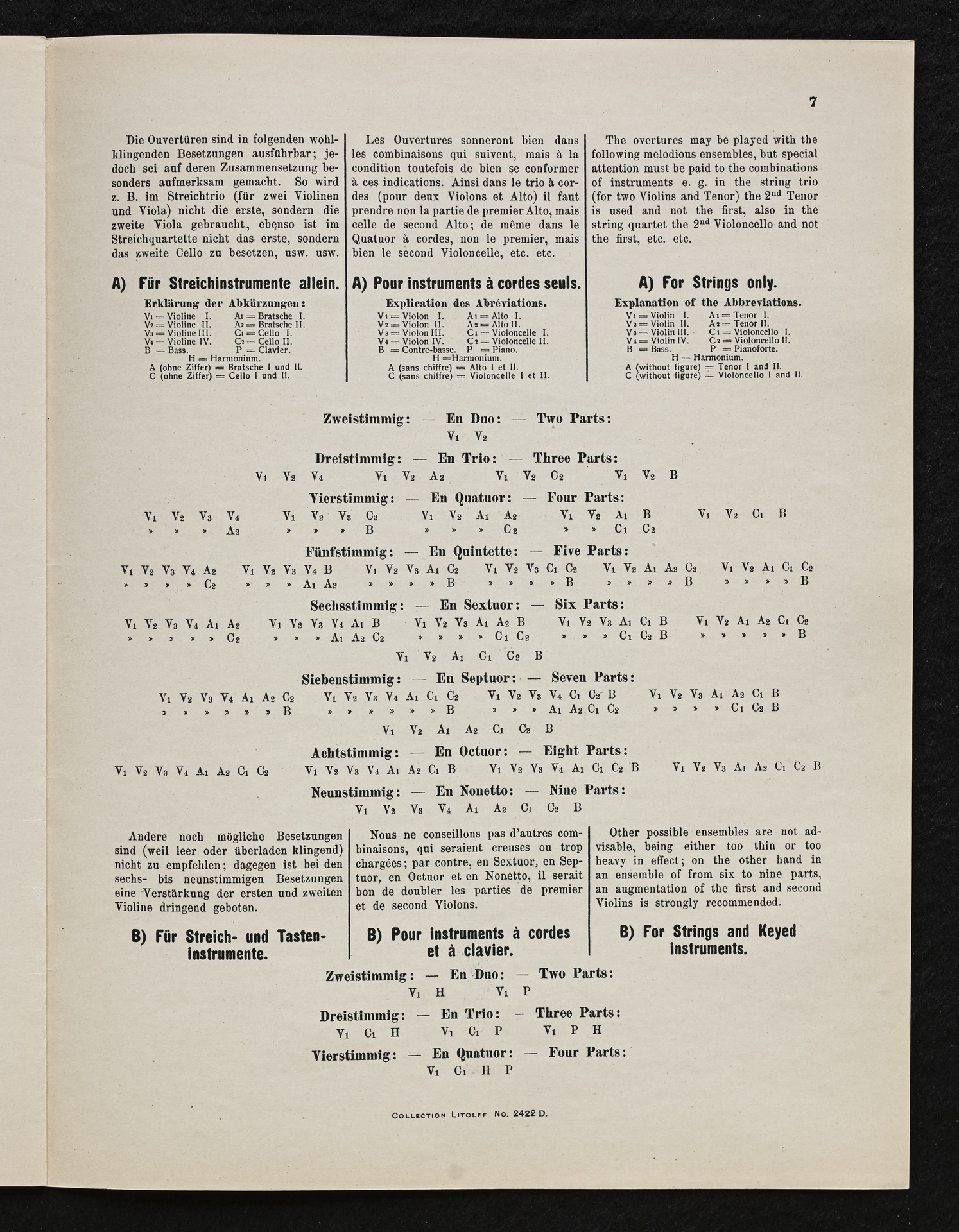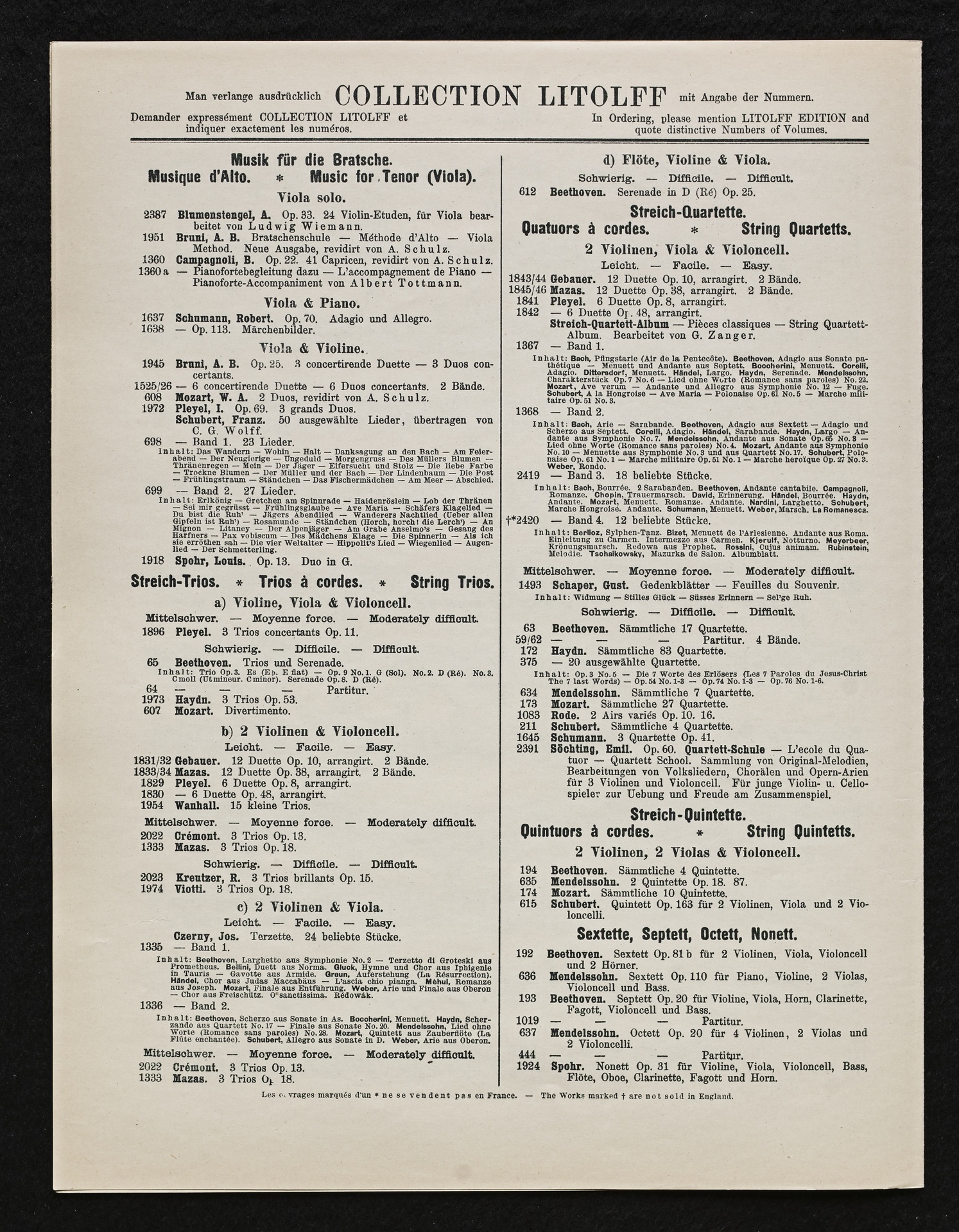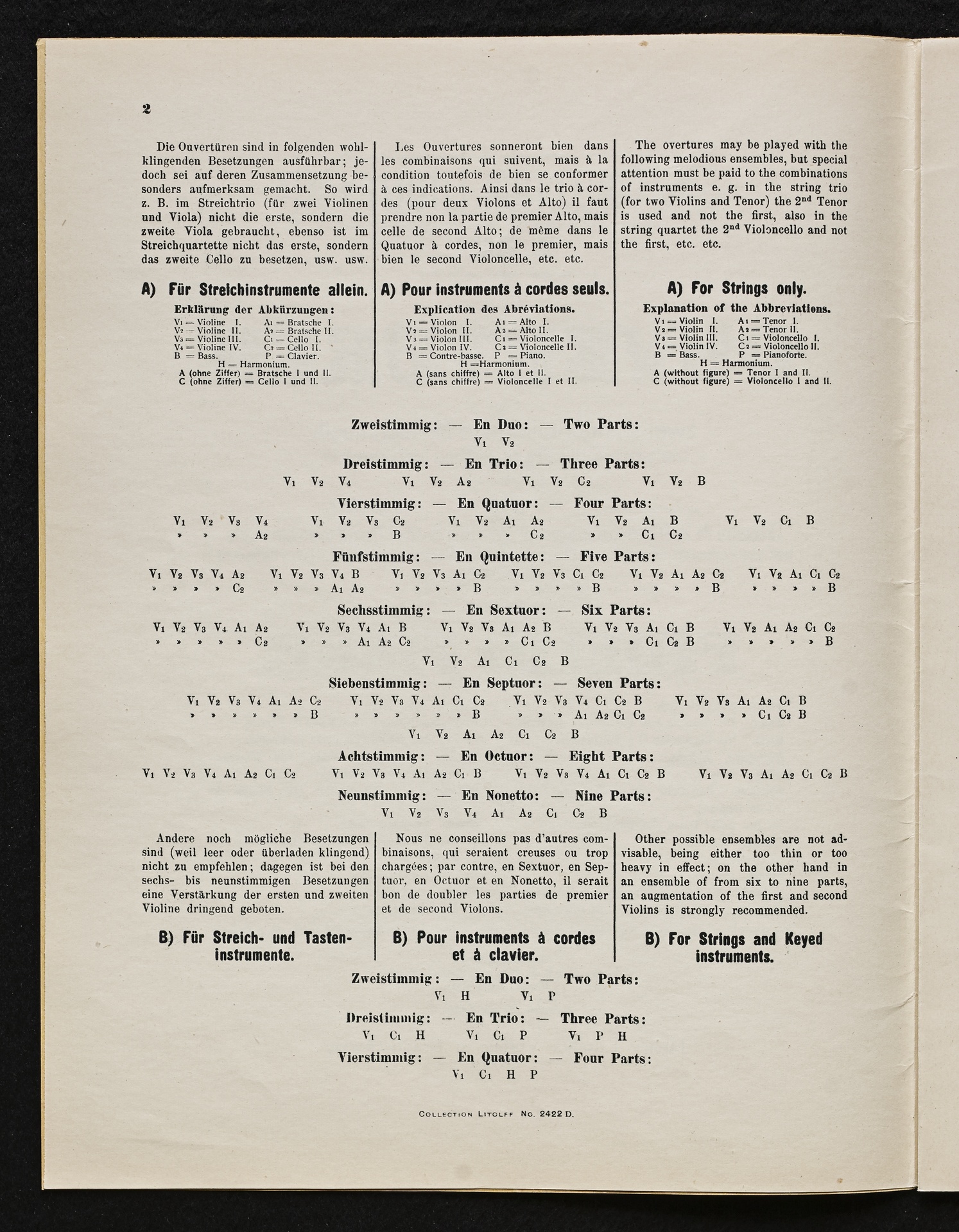 Ludwig van Beethoven, Musik zu Johann Wolfgang von Goethes Trauerspiel "Egmont" op. 84, Ouvertüre (f-Moll), Bearbeitung für 2 bis 9 Streicher, Klavier und Harmonium von Fidelio Finke, Stimmen, Litolff, 2422