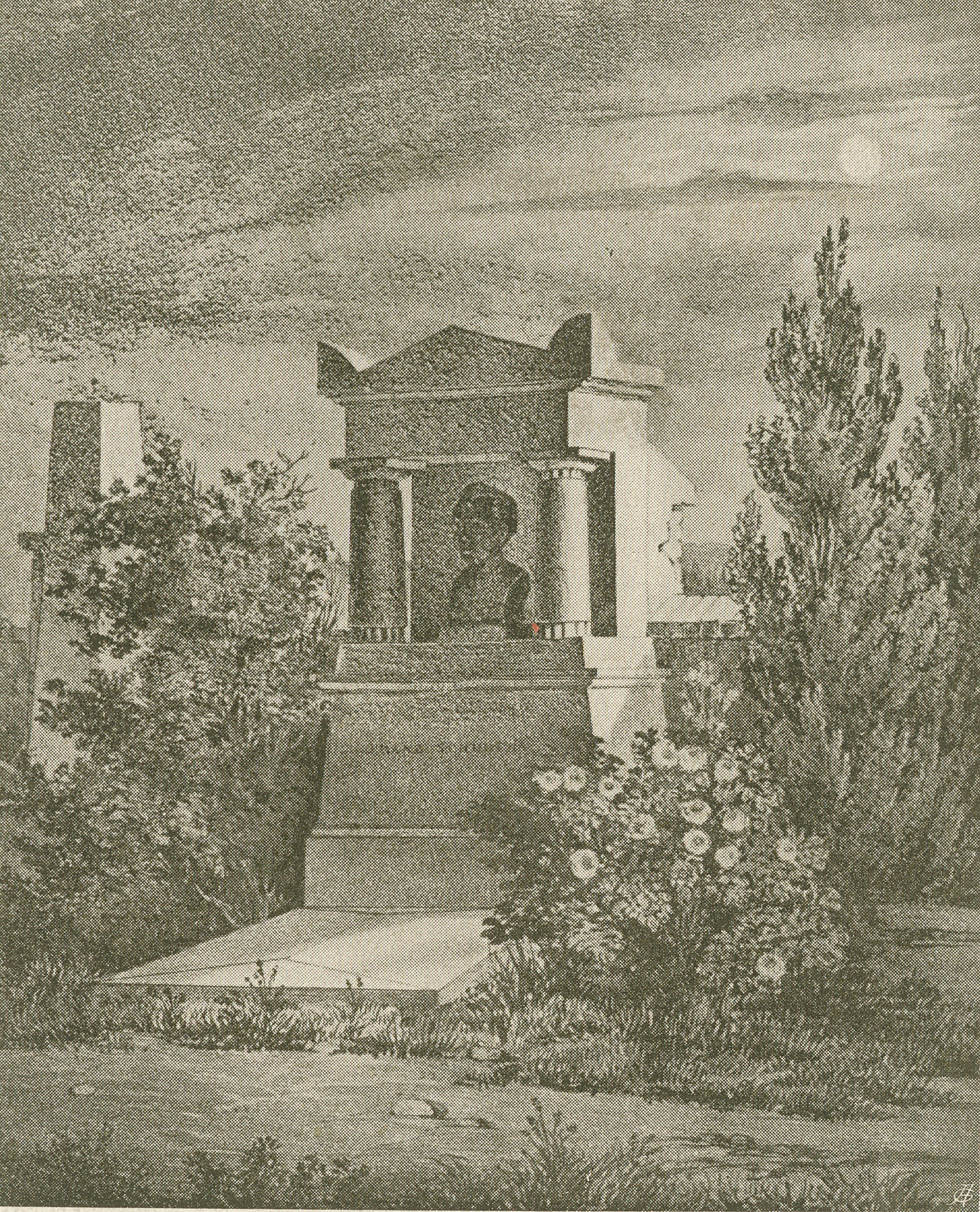 Das Grab Franz Schuberts auf dem Währinger Ortsfriedhof - Mit A. G. bezeichnete Reproduktion einer anonymen Lithographie