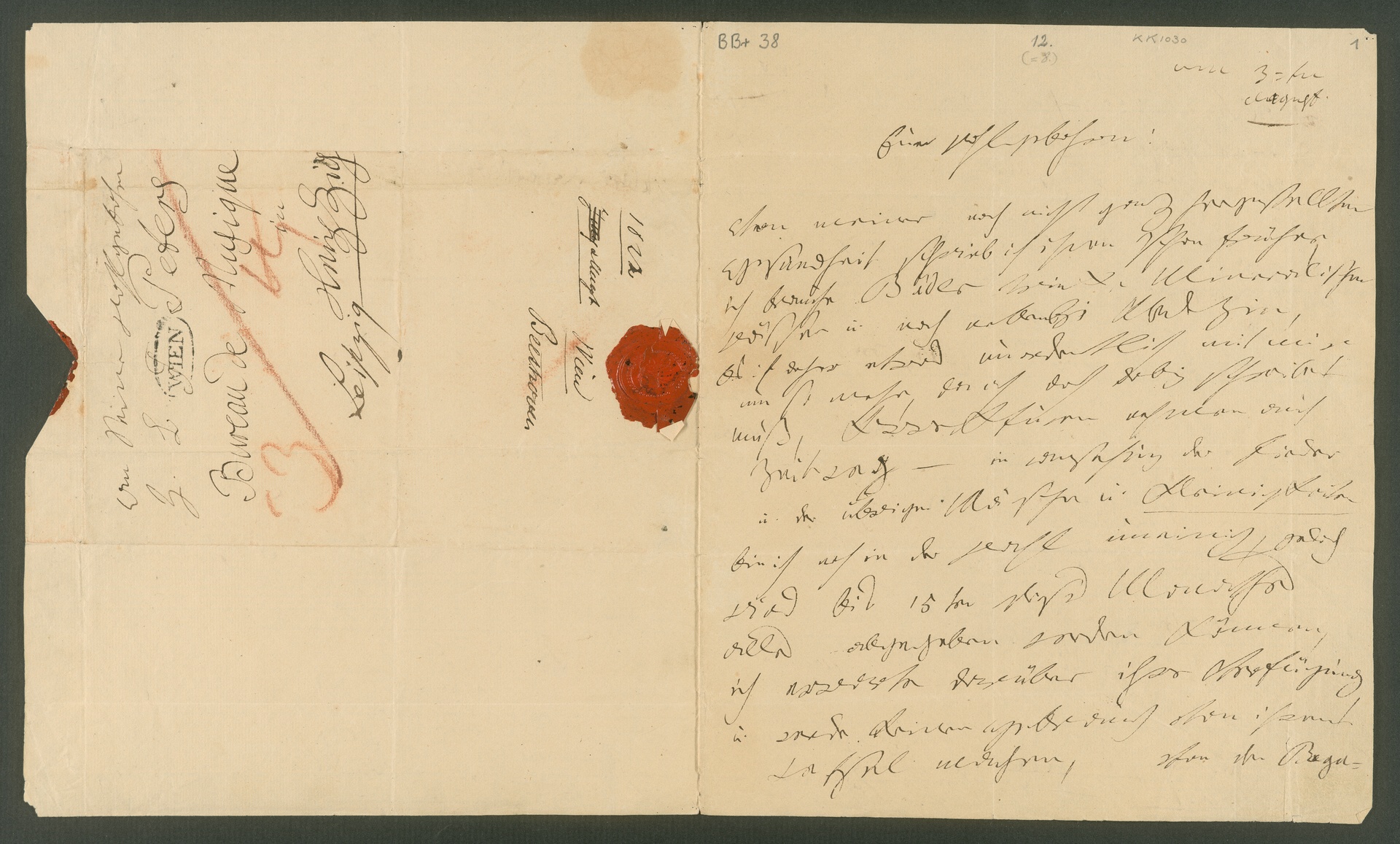 Ludwig van Beethoven, Brief an Carl Friedrich Peters in Leipzig, Döbling, 3. August 1822, Autograph