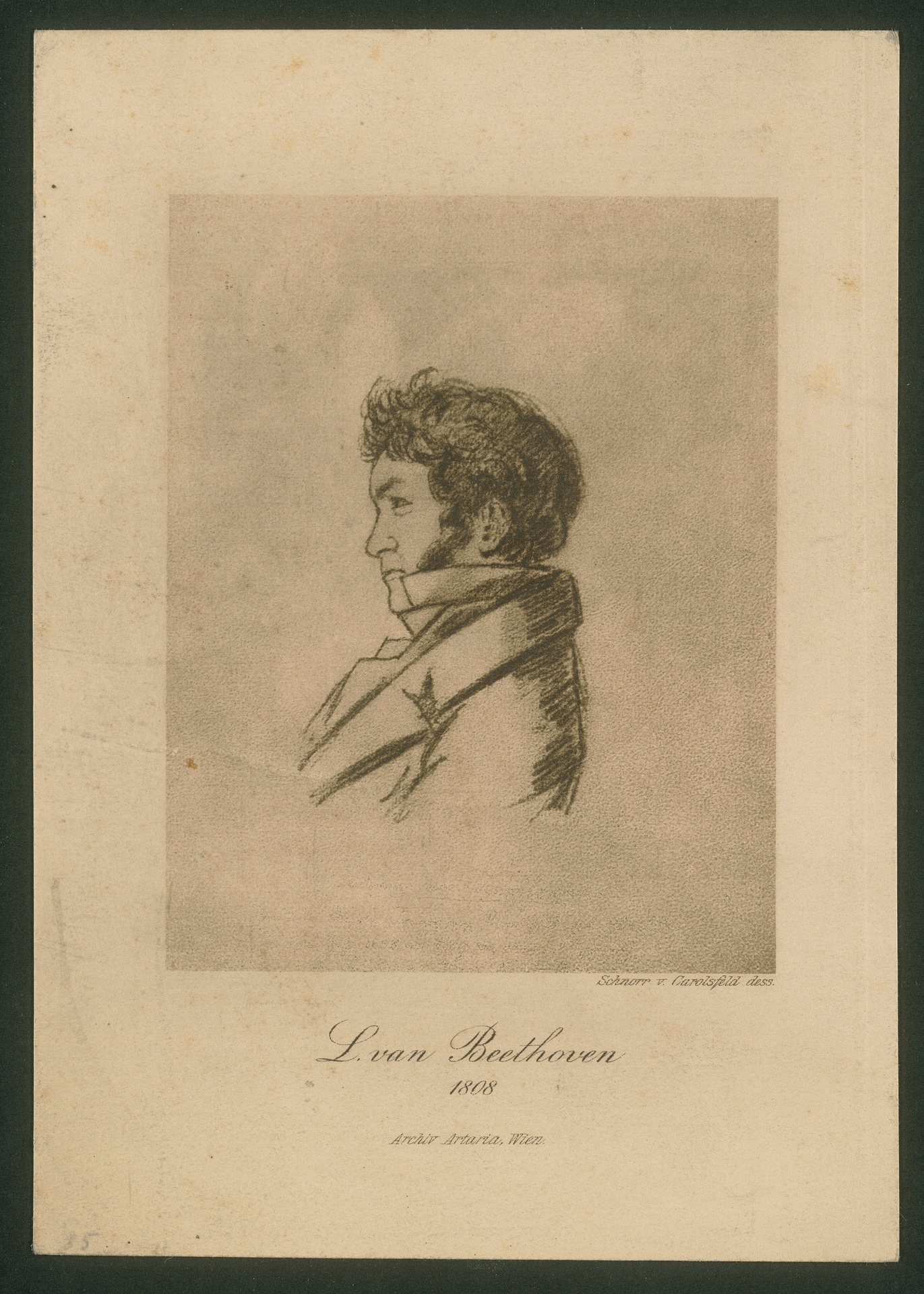 Ludwig van Beethoven - Zeichnung von Ludwig Ferdinand Schnorr von Carolsfeld aus dem Jahr 1810, Reproduktion, Wien, 2. Häfte 19. Jahrhundert