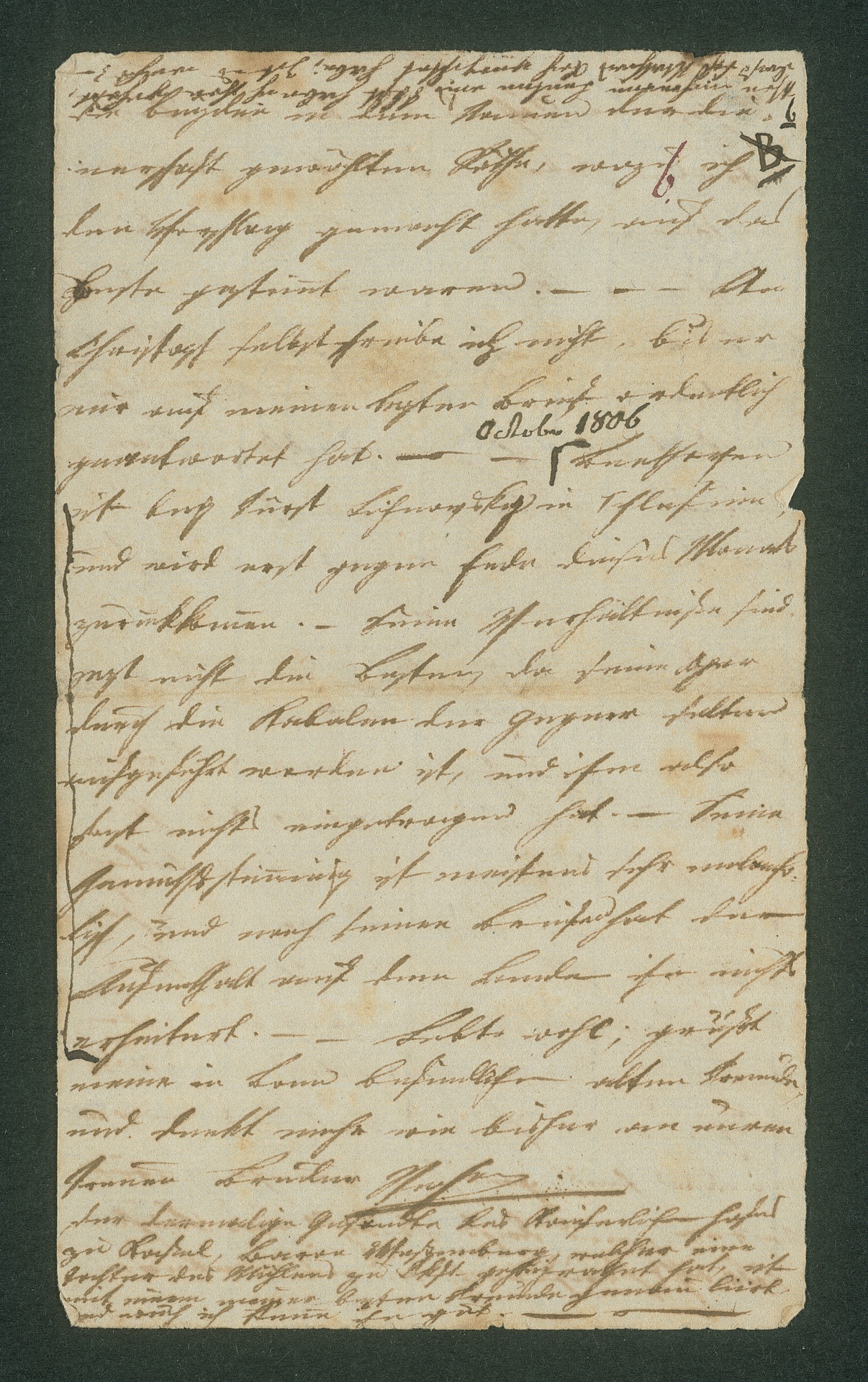 Stephan von Breuning, Brief an Franz Gerhard Wegeler und an Eleonore Wegeler, Wien, Oktober 1806, Autograph, Fragment