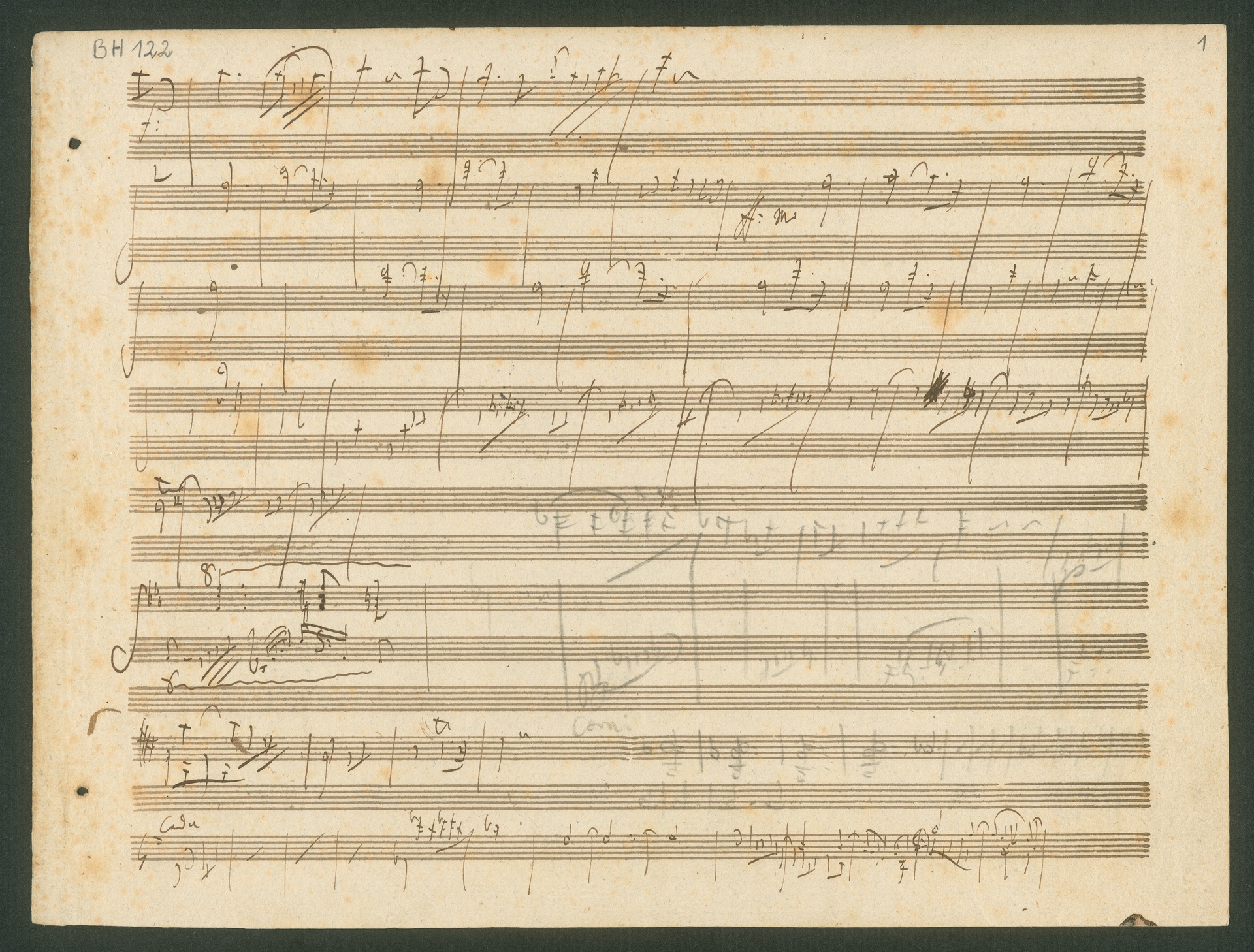 Ludwig van Beethoven, Skizzenblatt zur Sinfonie Nr. 8 op. 93, 1. Satz, Autograph
