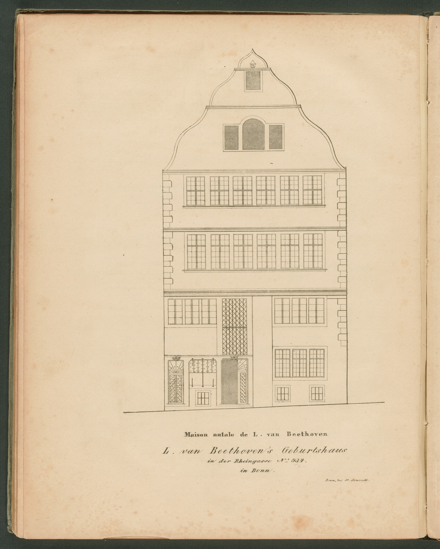 Bonn, Rheingasse, Wohnung der Familie Beethoven - Stich, erschienen bei Simrock, Bonn, 1837