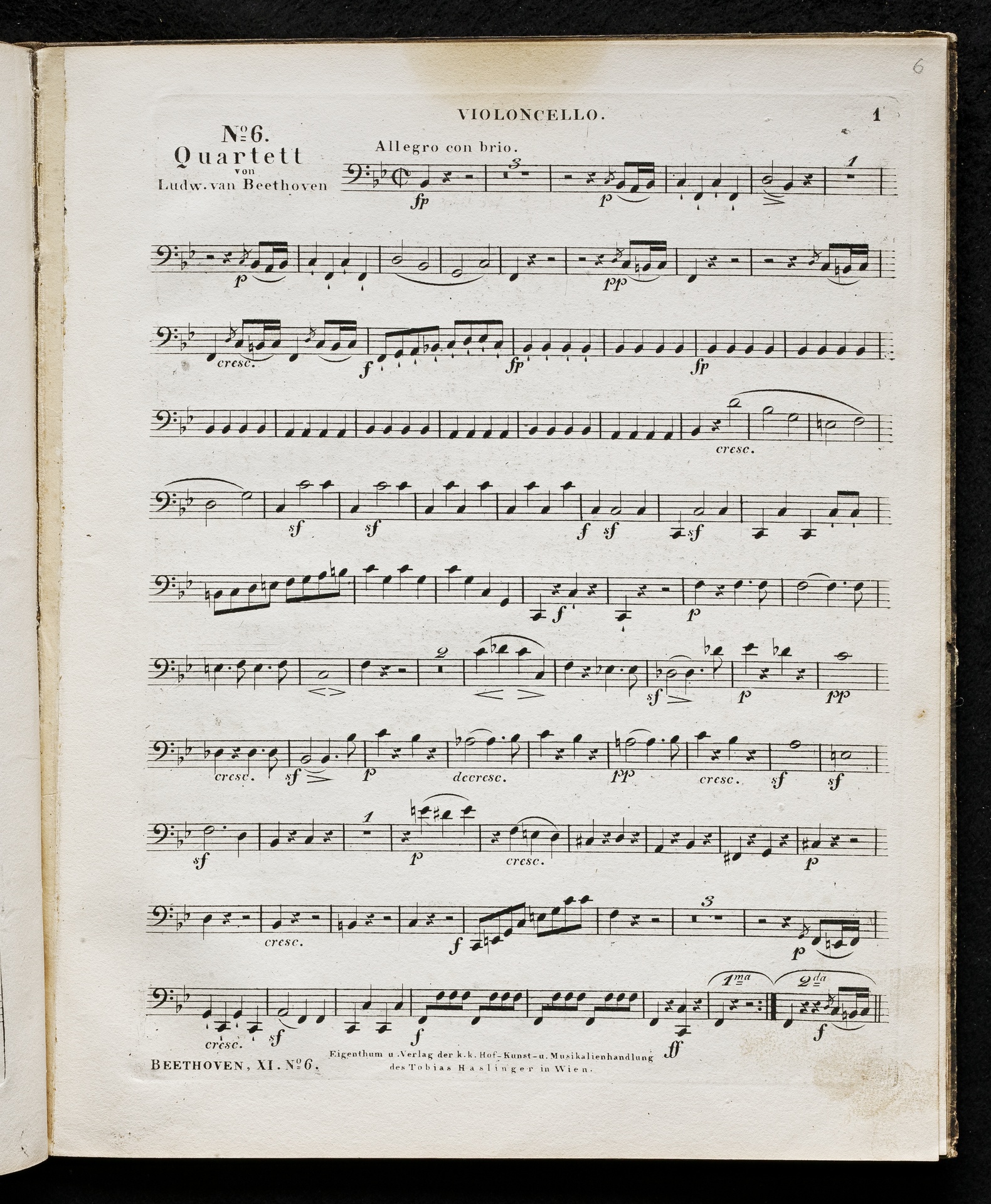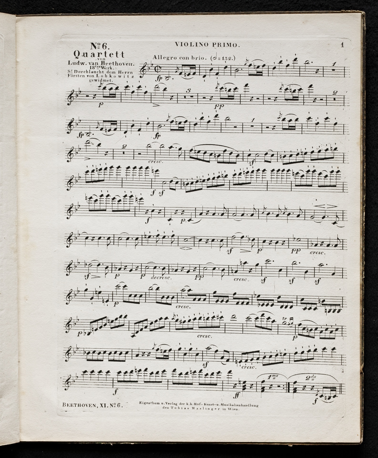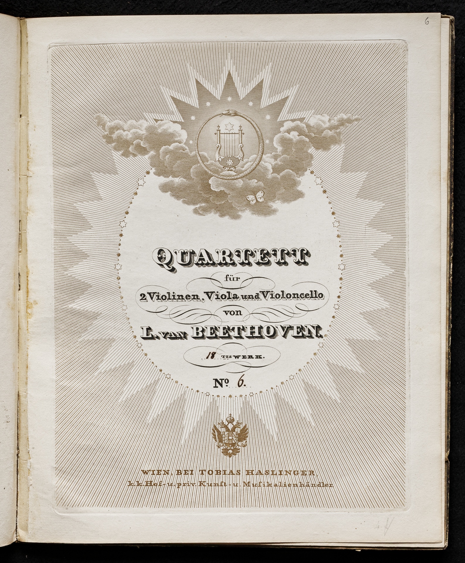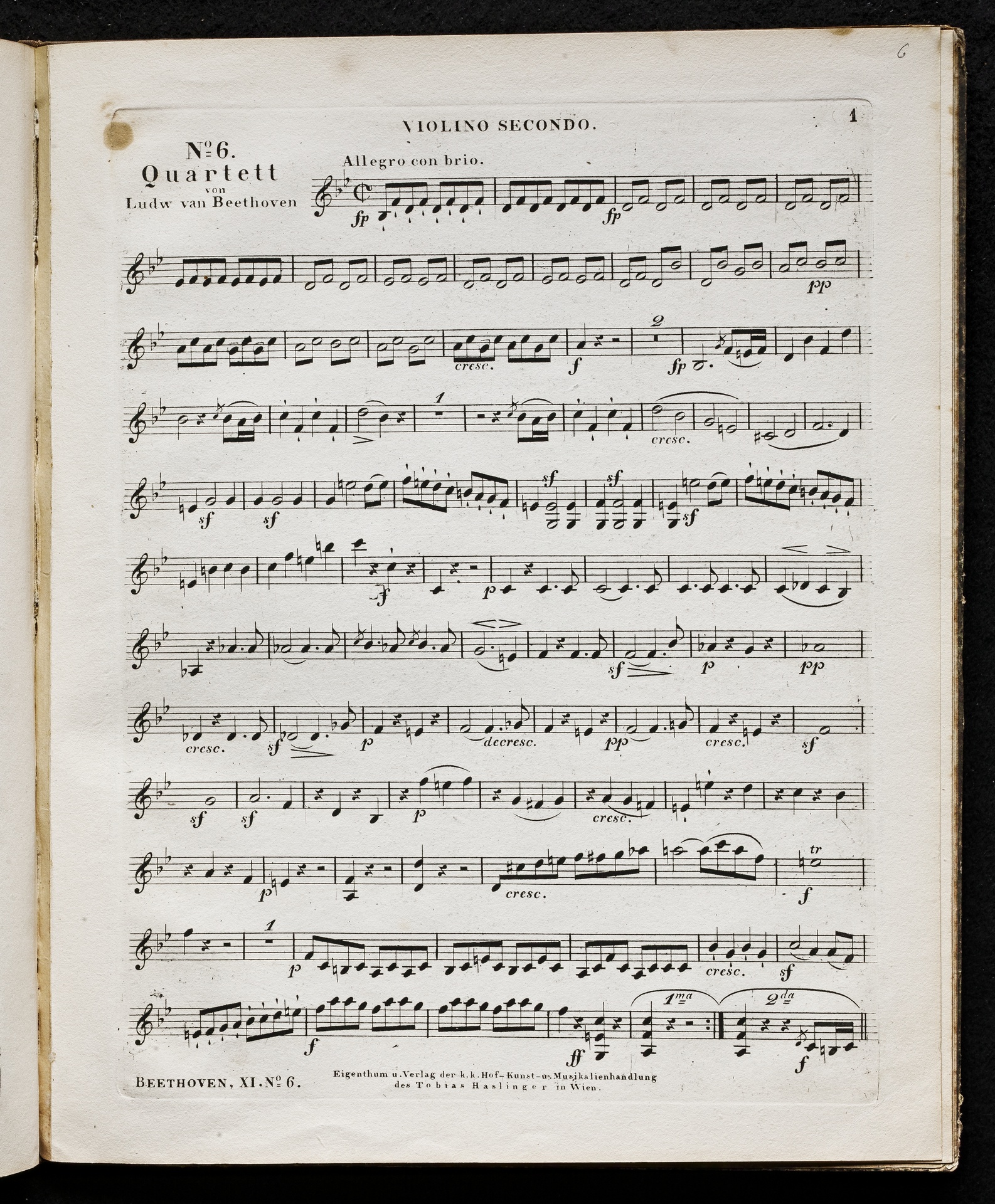 Ludwig van Beethoven, Quartett für 2 Violinen, Viola, Violoncello (B-Dur) op. 18, 6, Stimmen, Haslinger, 11,6
