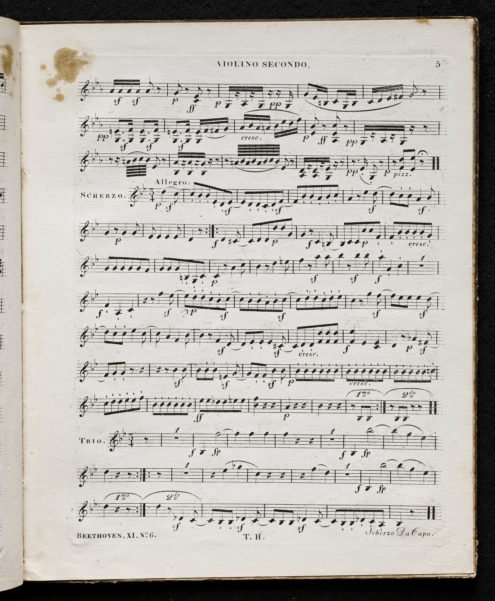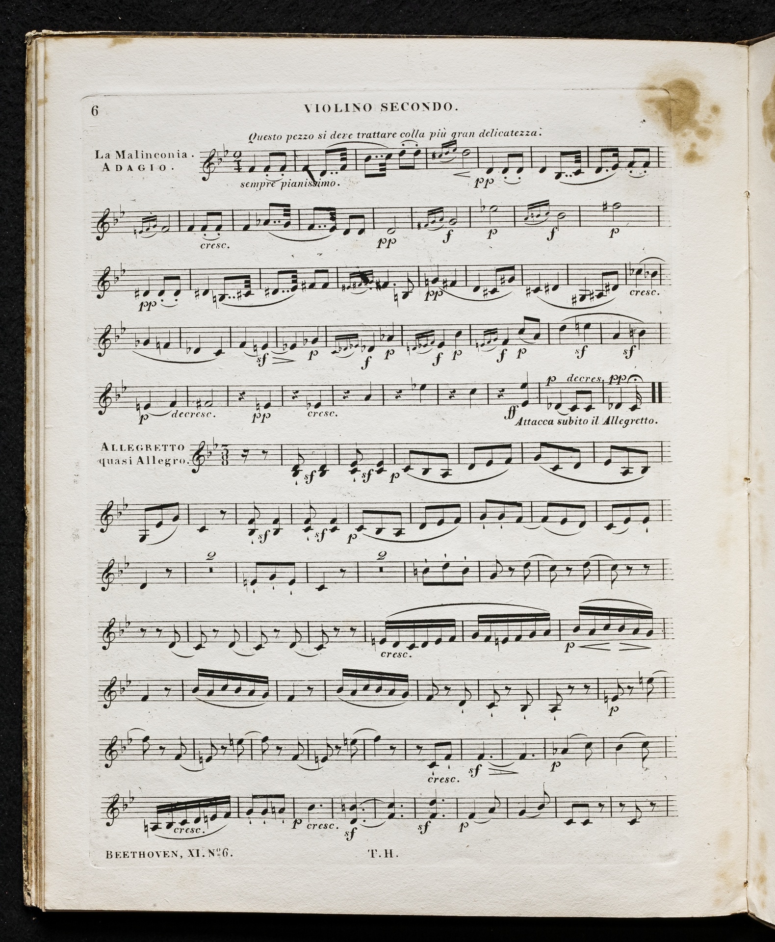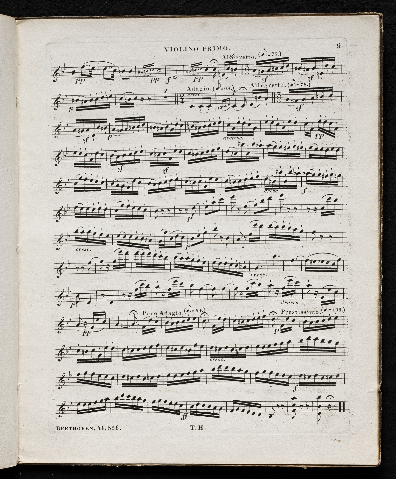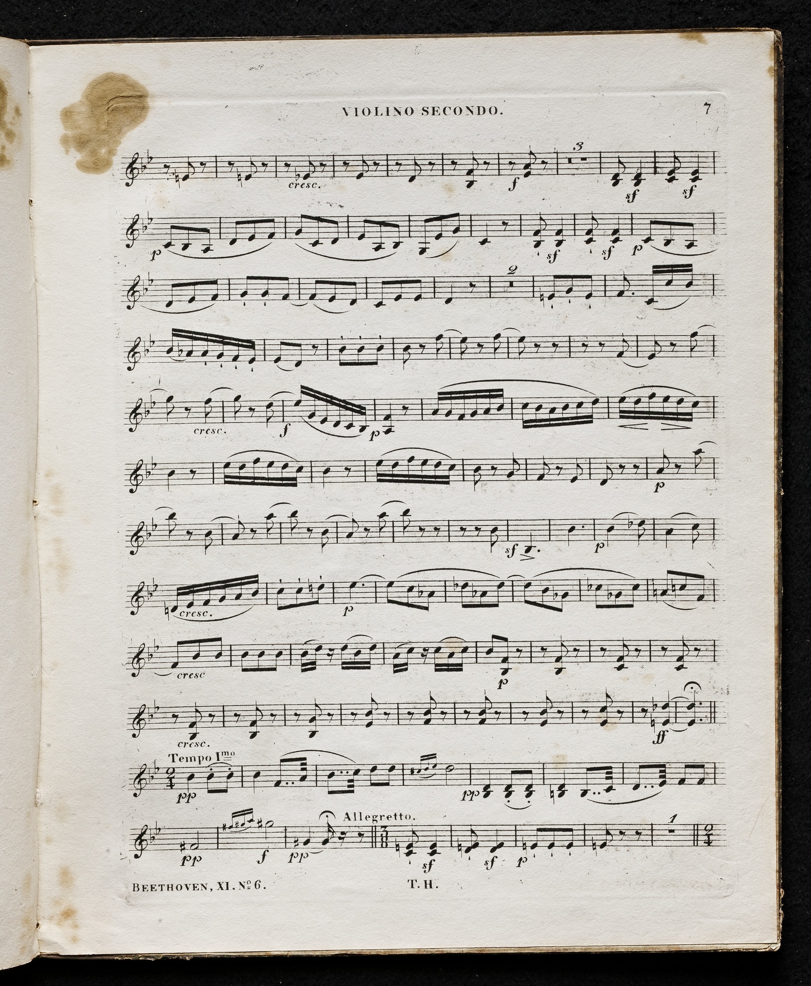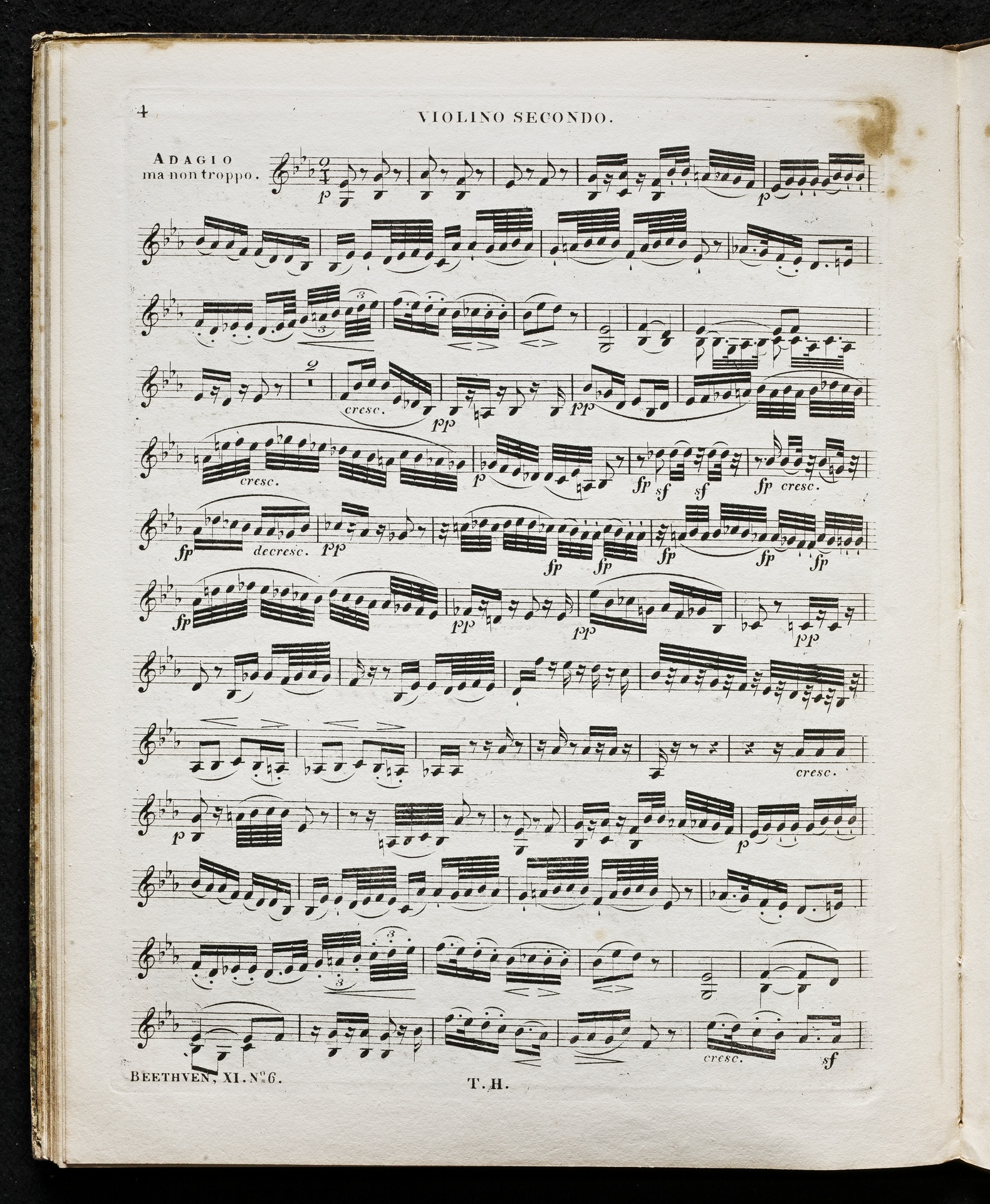 Ludwig van Beethoven, Quartett für 2 Violinen, Viola, Violoncello (B-Dur) op. 18, 6, Stimmen, Haslinger, 11,6