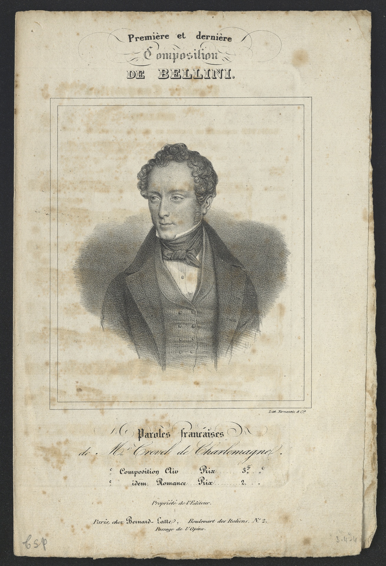 Vincenzo Bellini (1801-1835) - Lithographie der Manufaktur Formentin nach einer anonymen Zeichnung oder einem Gemälde, veröffentlicht von Bernard-Latte, Paris