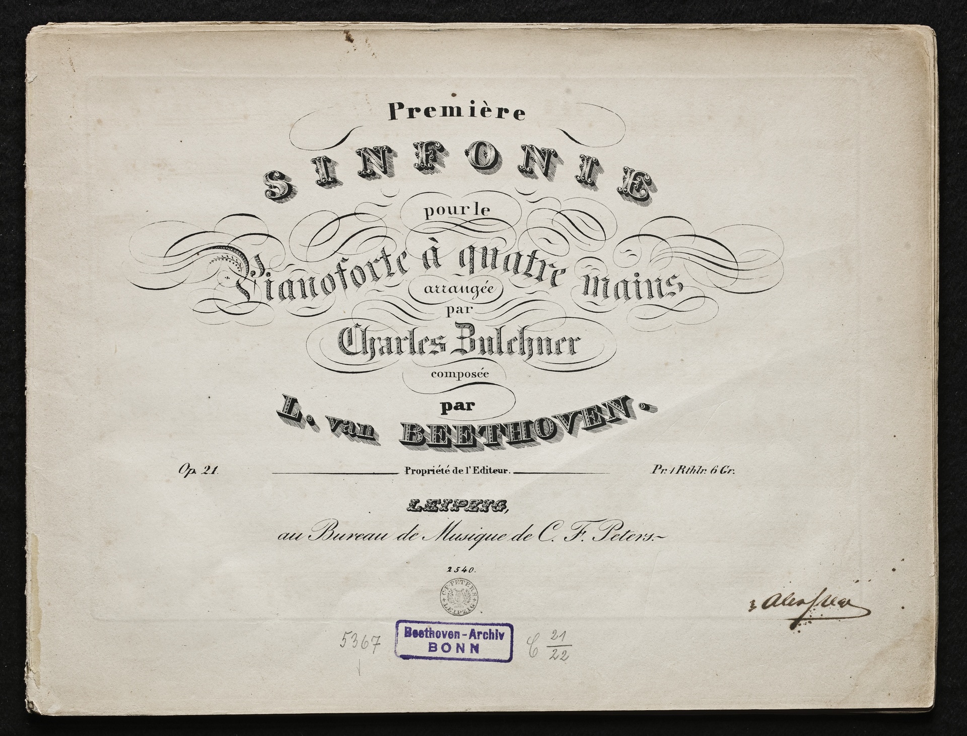 Ludwig van Beethoven, Sinfonie Nr. 1 (C-Dur) op. 21, Bearbeitung für Klavier zu 4 Händen von Carl Zulehner, Peters, 2540