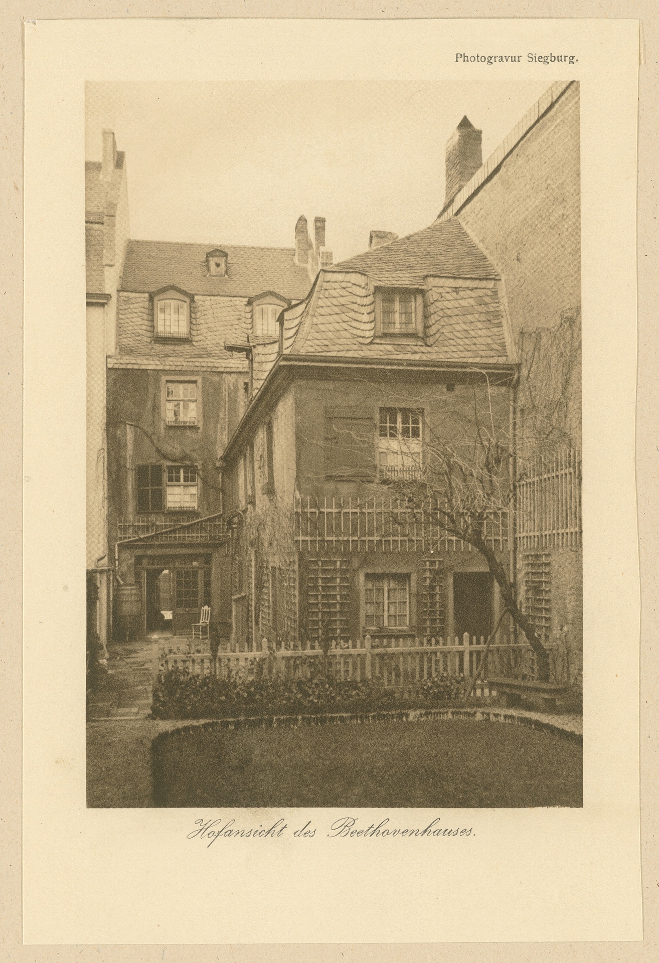 Beethoven-Haus, Bonn, Bonngasse, Gartenansicht im Winter - Fotografie, Heliogravüre der Firma Deutsche Photogravur Aktiengesellschaft Siegburg, Siegburg, um 1910