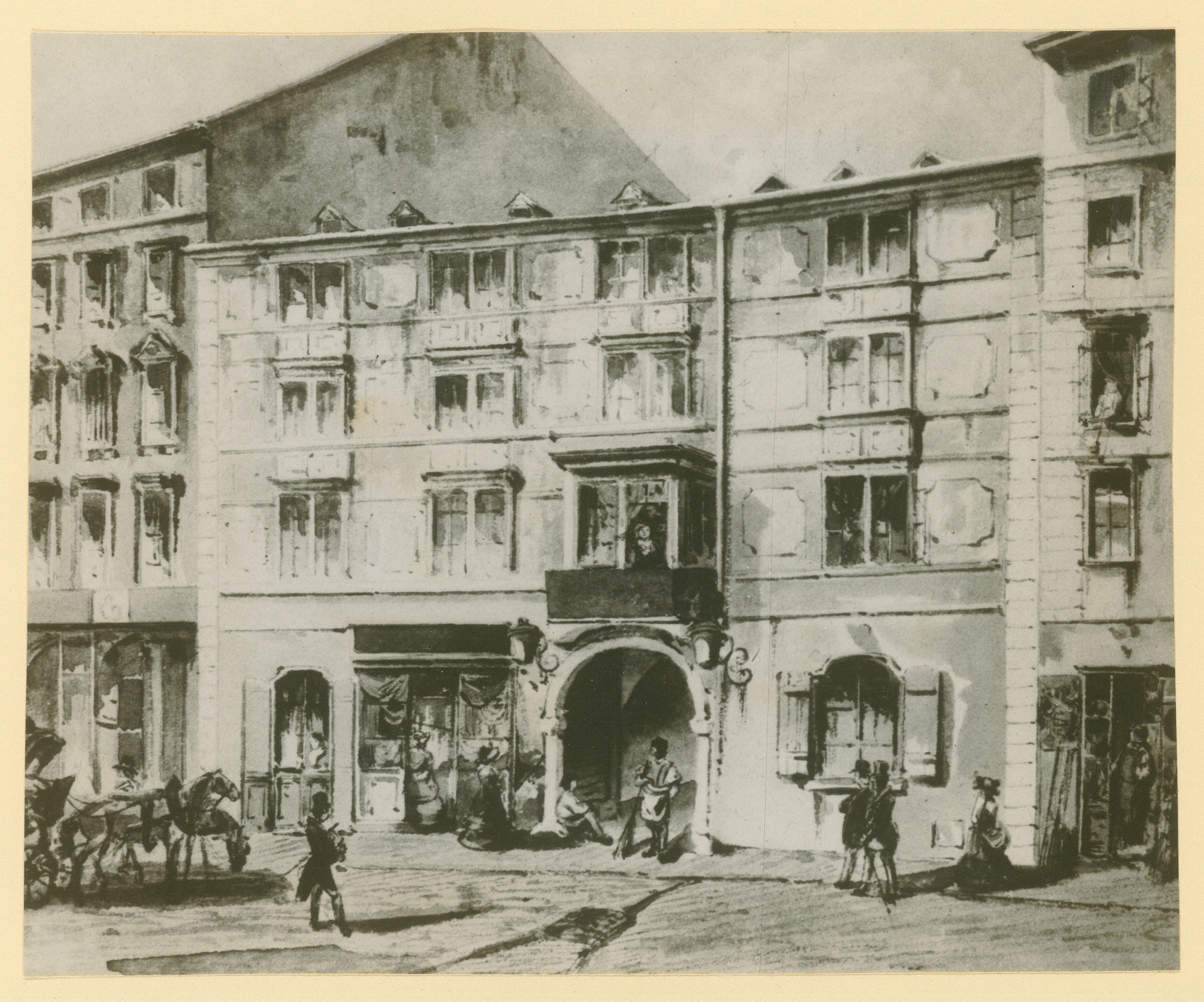 Wien, Spiegelgasse 5, Gasthaus "Matschakerhof" - Aquarell von Anton Stutzinger, wohl aus der Mitte des 19. Jahrhunderts, Fotografie, Wien, um 1925?
