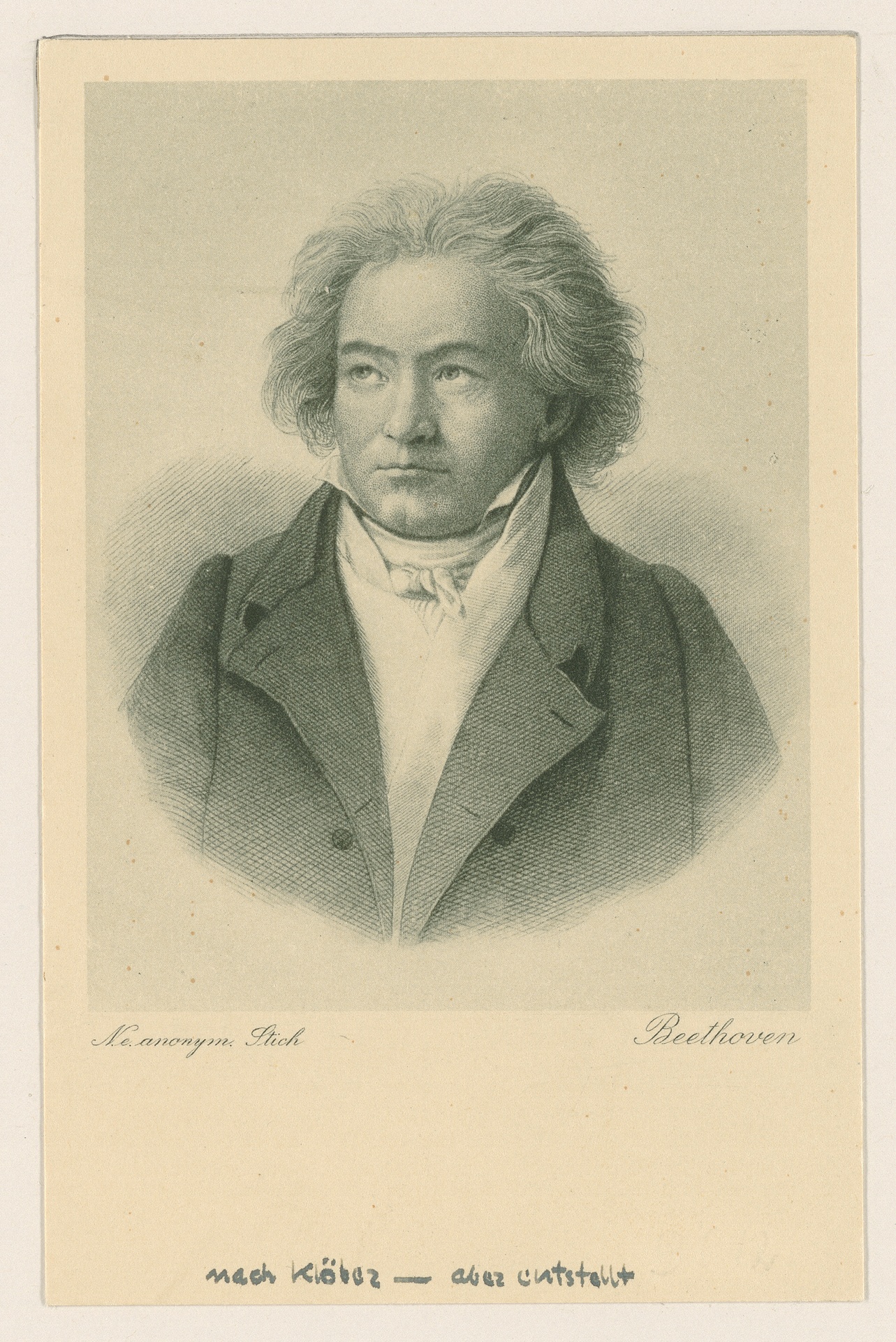 Ludwig van Beethoven - anonymer Stich nach der Zeichnung von August von Kloeber von 1818, Reproduktion, erschienen bei Wiechmann, München, um 1920?