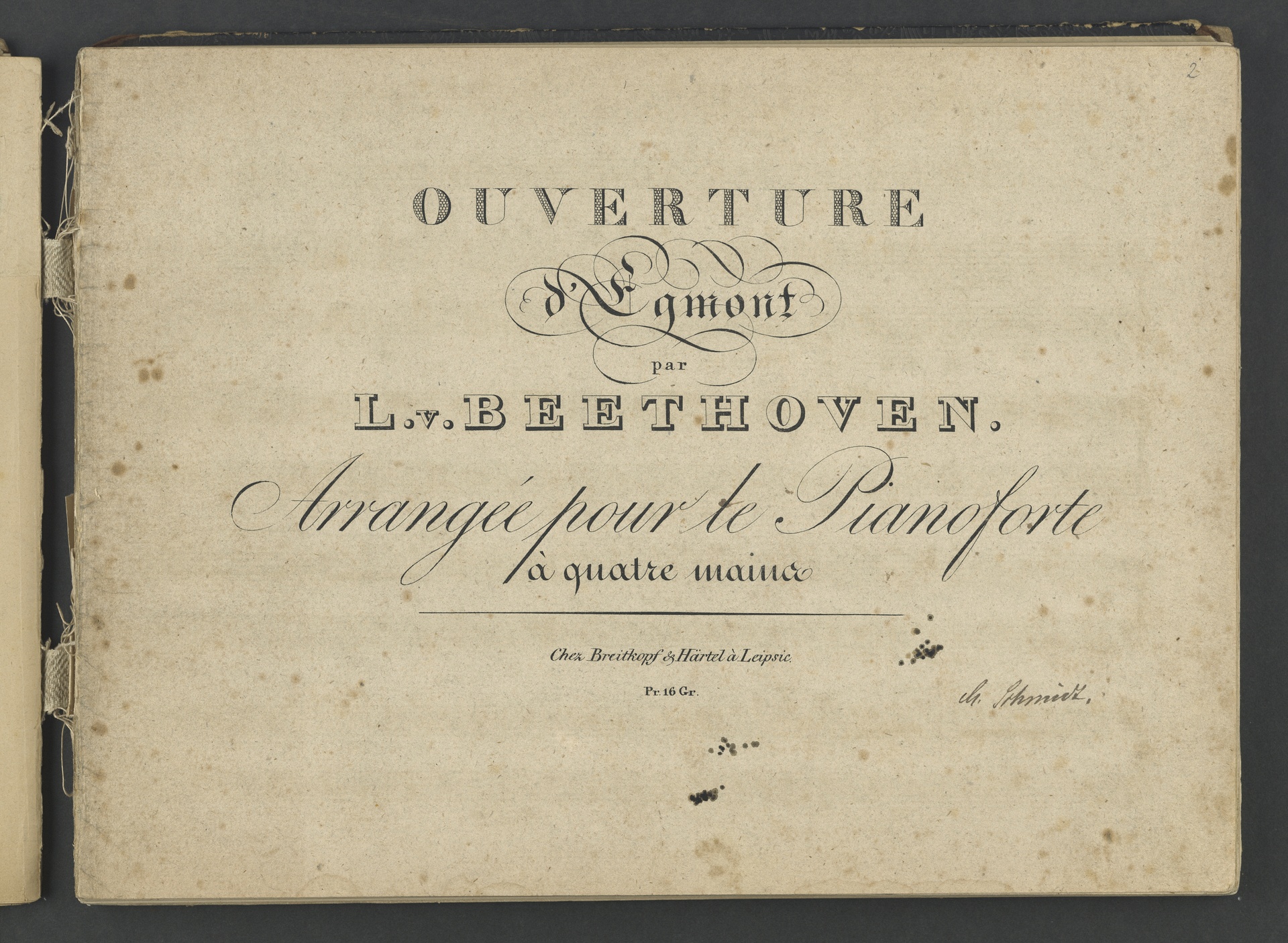 Ludwig van Beethoven, Musik zu Johann Wolfgang von Goethes Trauerspiel "Egmont" op. 84, Ouvertüre (f-Moll), Bearbeitung für Klavier zu 4 Händen, Breitkopf und Härtel, 3753