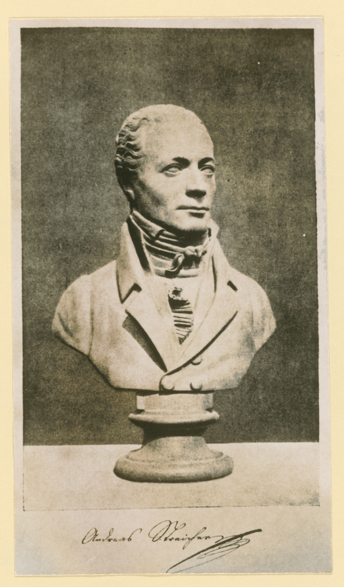 Andreas Streicher (1761-1833). - Anonyme Reproduktionsfotografie nach einer ebenfalls anonymen älteren Aufnahme einer vermutlich von Franz Klein gefertigten Büste aus der Zeit um 1812, Wien, um 1920?