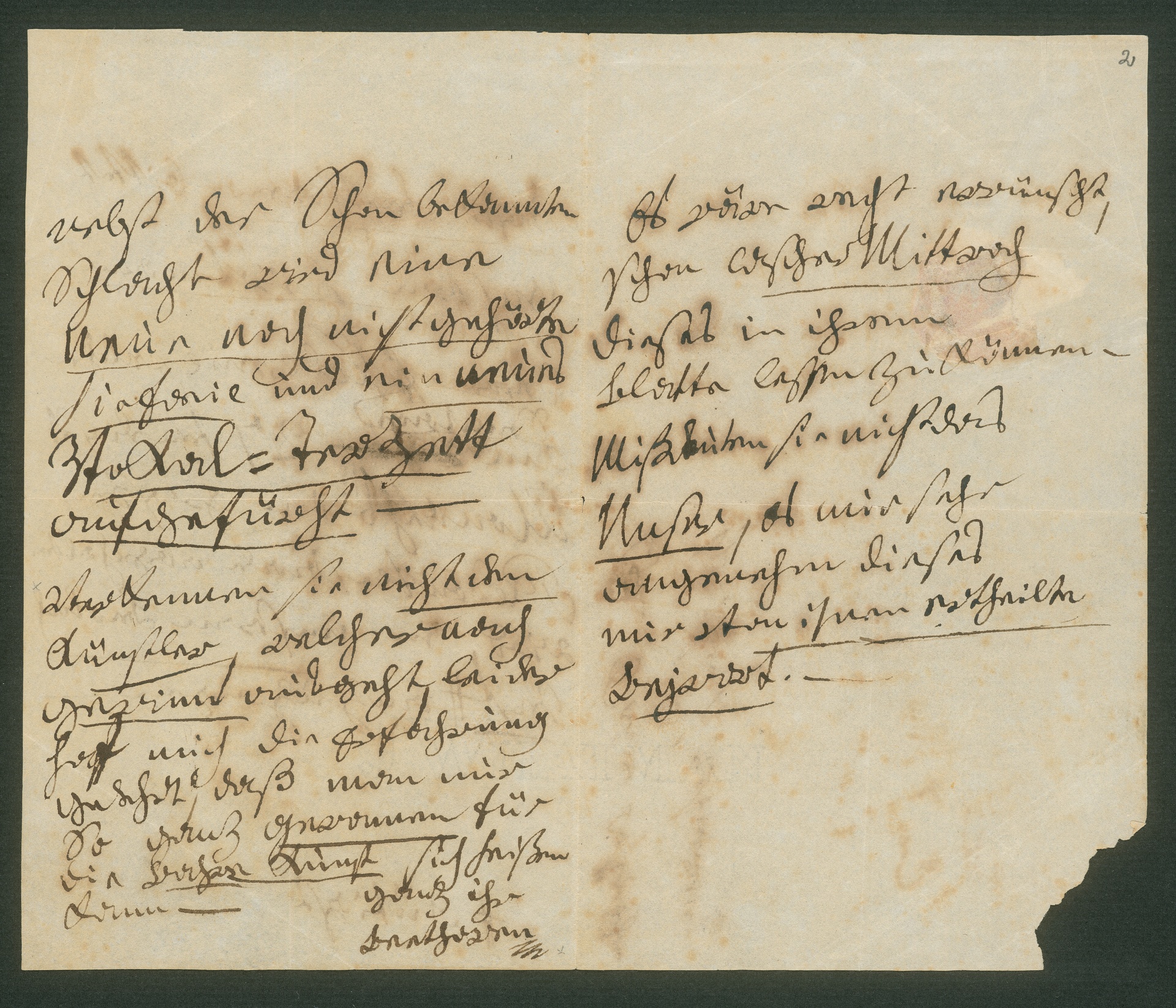 Beethoven bittet Herrn Hartmann, dieser möge seine bevorstehende Akademie spätestens Aschermittwoch im Österreichischen Beobachter ankündigen (die Akademie sollte am darauf folgenden Sonntag stattfinden). Aufgeführt werde neben der schon bekannten Ouvertüre "Wellingtons Sieg" op. 91 eine "neue noch nicht gehörte Sinfonie" op. 93 und das (angeblich) "neue" Terzett op. 116. (J.R.)