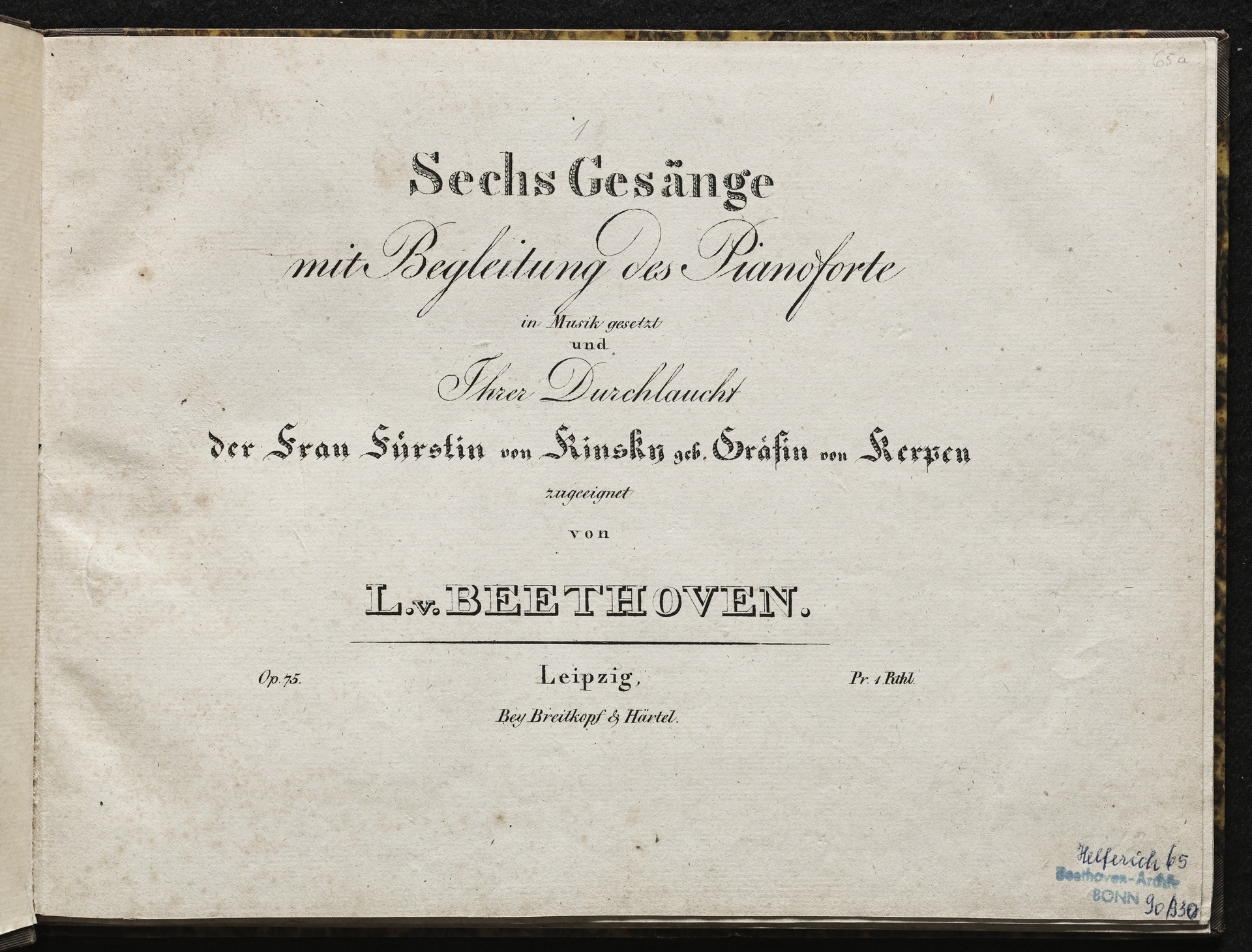 Ludwig van Beethoven, Gesänge für Singstimme und Klavier op. 75, 1-6, Breitkopf und Härtel, 3004