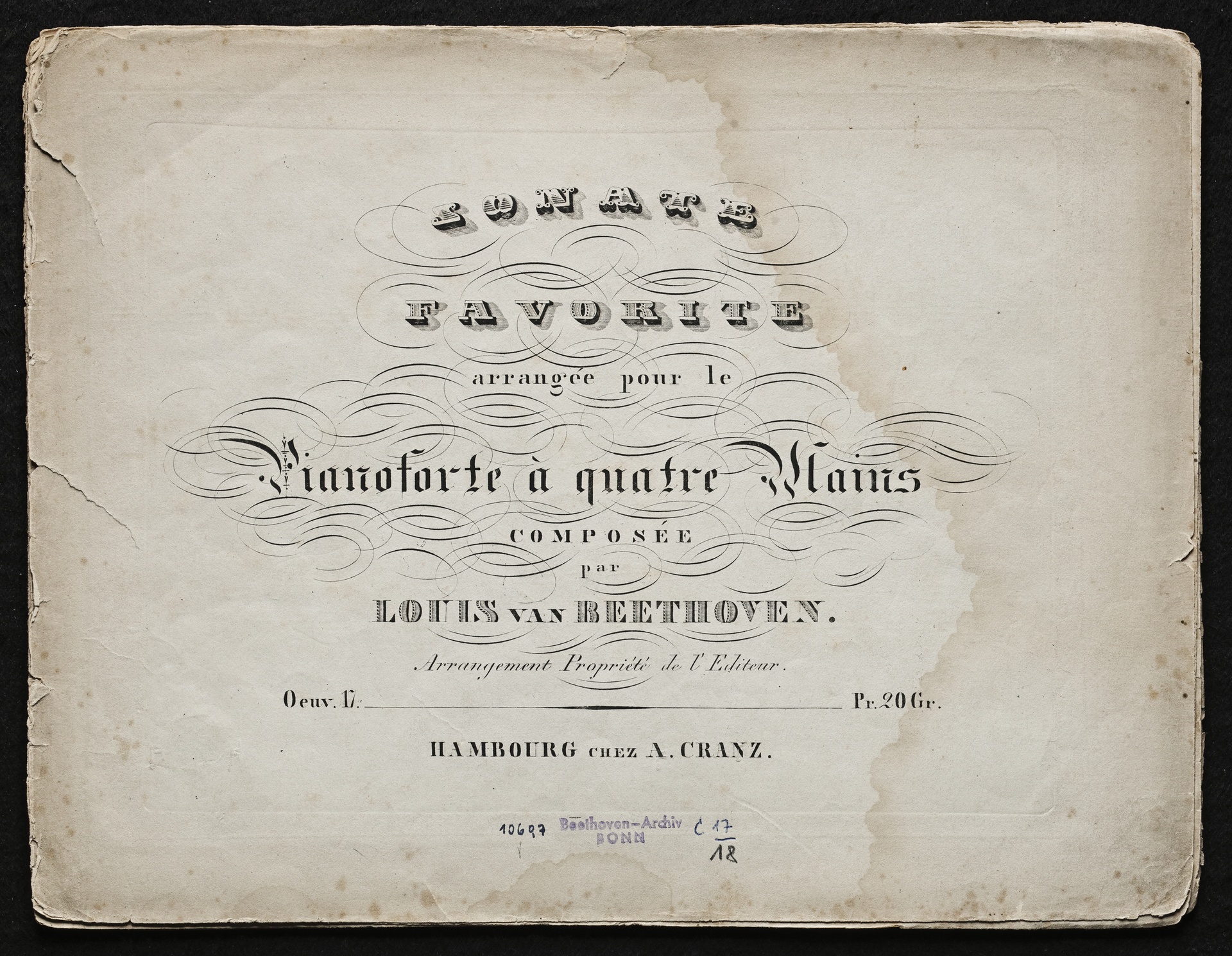 Ludwig van Beethoven, Sonate für Klavier und Horn oder Violoncello (F-Dur) op. 17, Bearbeitung für Klavier zu 4 Händen, Cranz