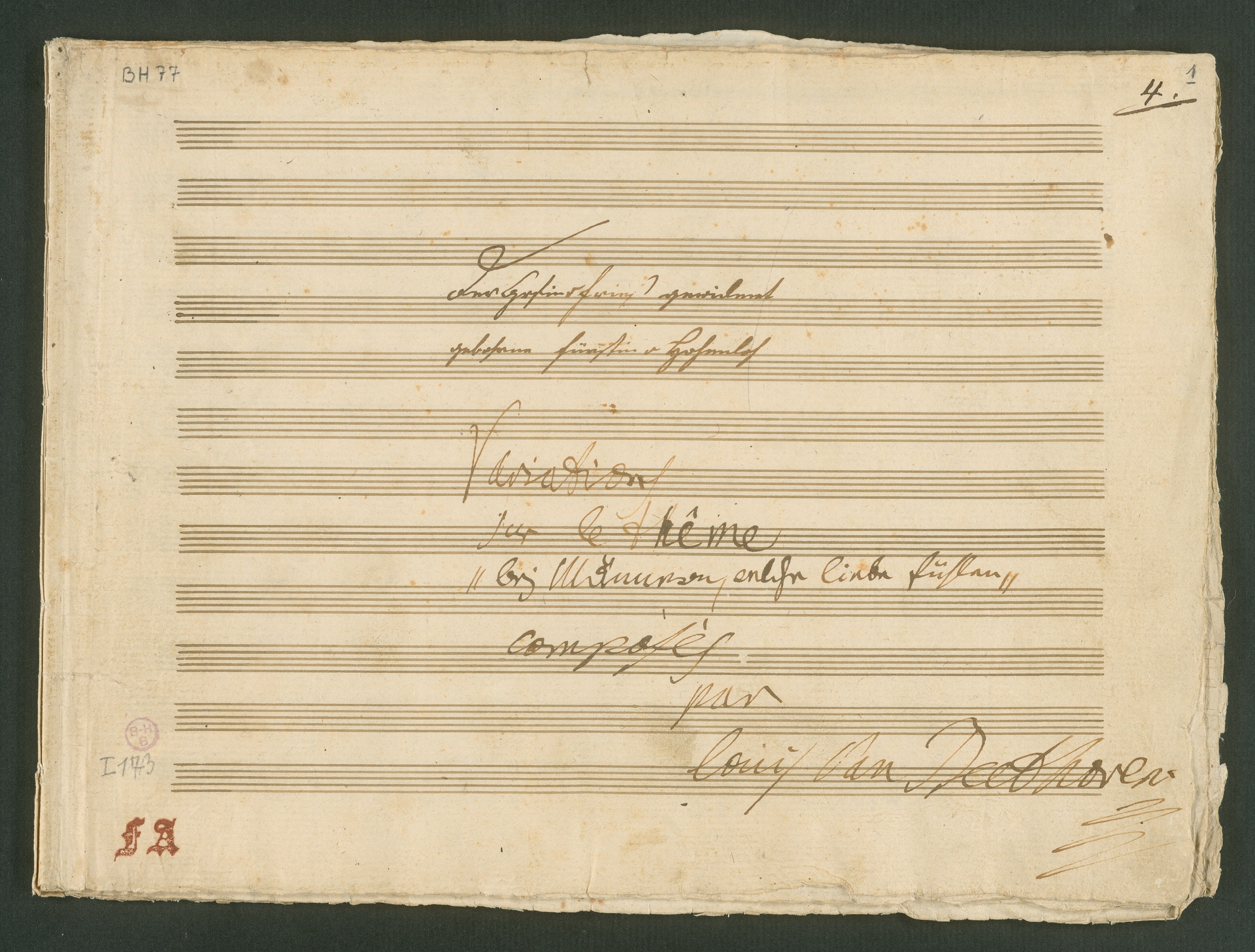 Ludwig van Beethoven, Sieben Variationen über "Bei Männern, welche Liebe fühlen" aus Wolfgang Amadeus Mozarts Oper "Die Zauberflöte" für Klavier und Violoncello (Es-Dur) WoO 46, Partitur, Autograph
