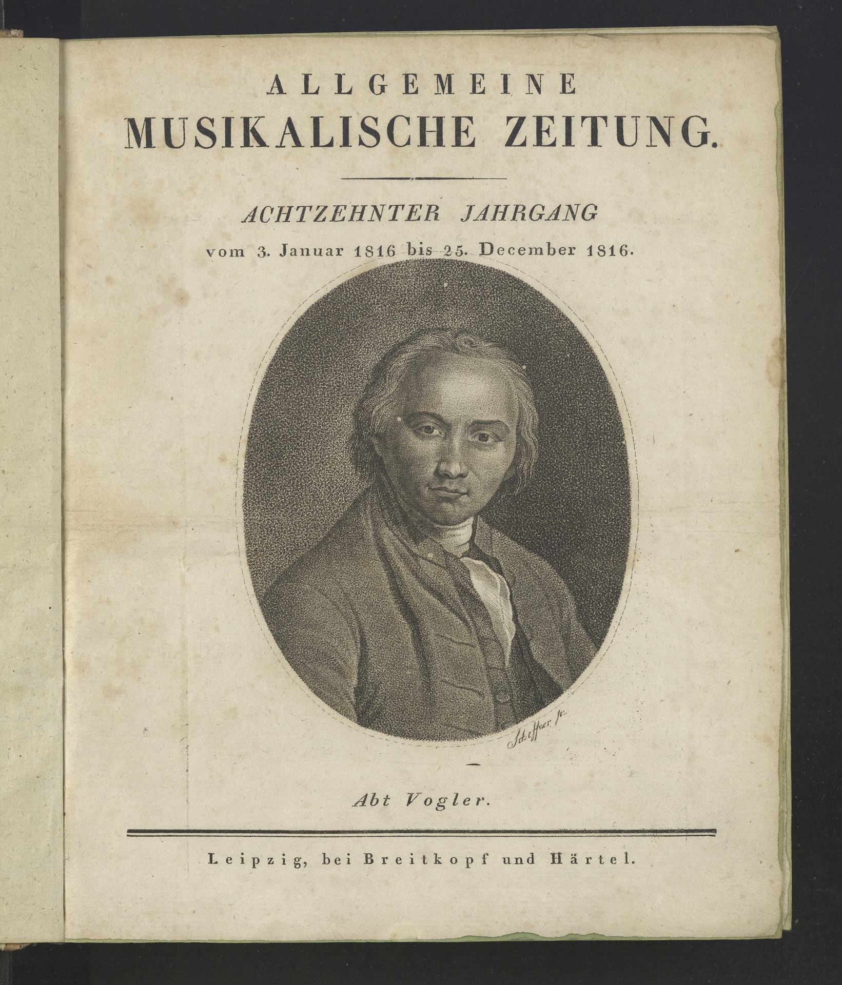 Josef Georg Vogler, genannt Abbé Vogler (1749-1814) - Stich von Johann Gottfried Scheffner, erschienen im Verlag Breitkopf & Härtel, Leipzig, 1816