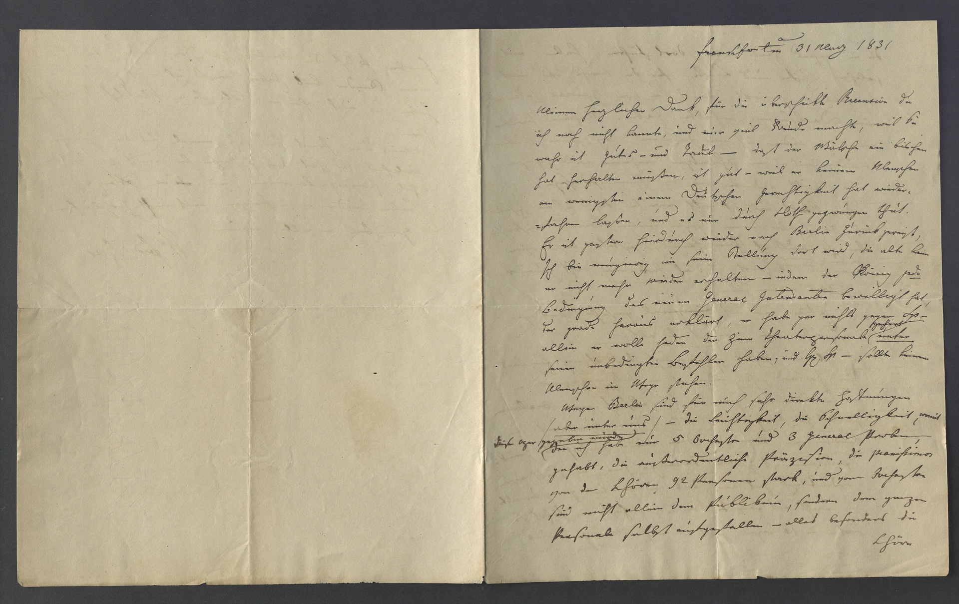 Ferdinand Ries, Brief an Franz Gerhard Wegeler in Koblenz, Frankfurt am Main, 31. März 1831, Autograph