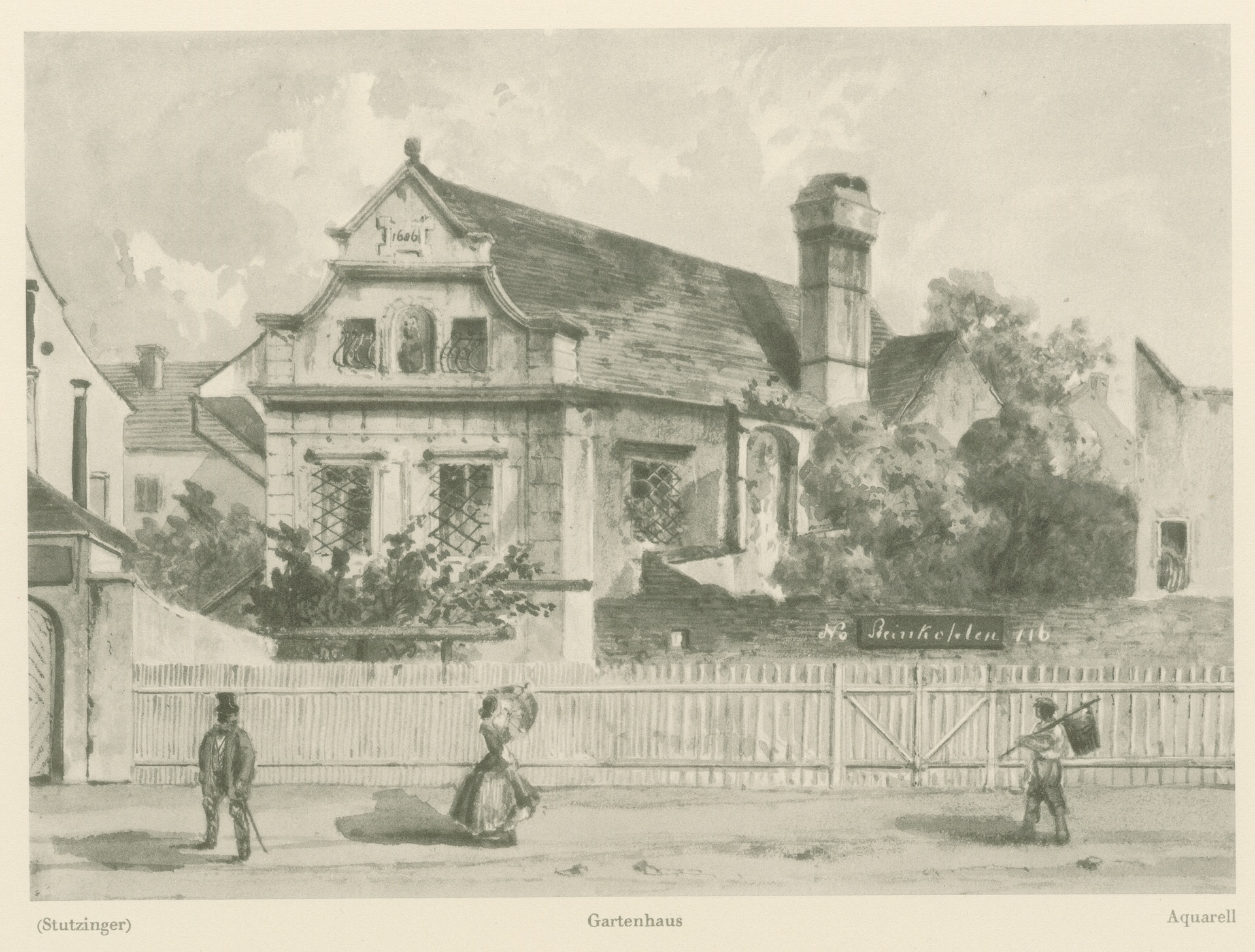 Gartenhaus in der Wiener Mollardgasse, um 1860 - Reproduktion eines Aquarells von Anton Stutzinger