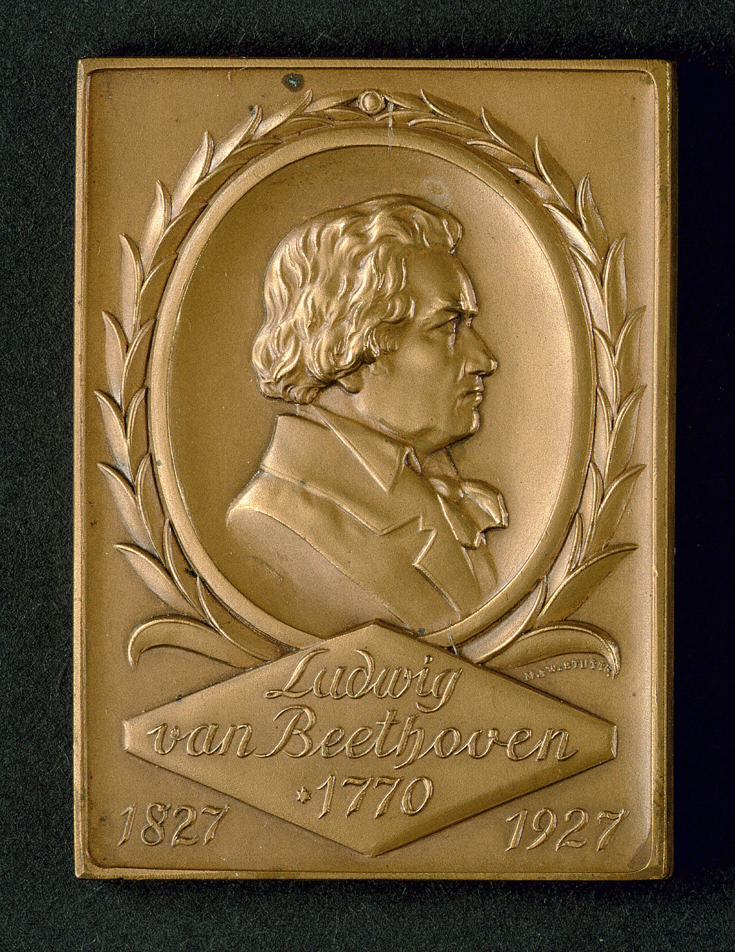 Ludwig van Beethoven, Plakette, 1927 - Bronzerelief der Gießerei Mayer & Wilhelm nach einem Entwurf von Hermann Weckwerth, Stuttgart, 1927
