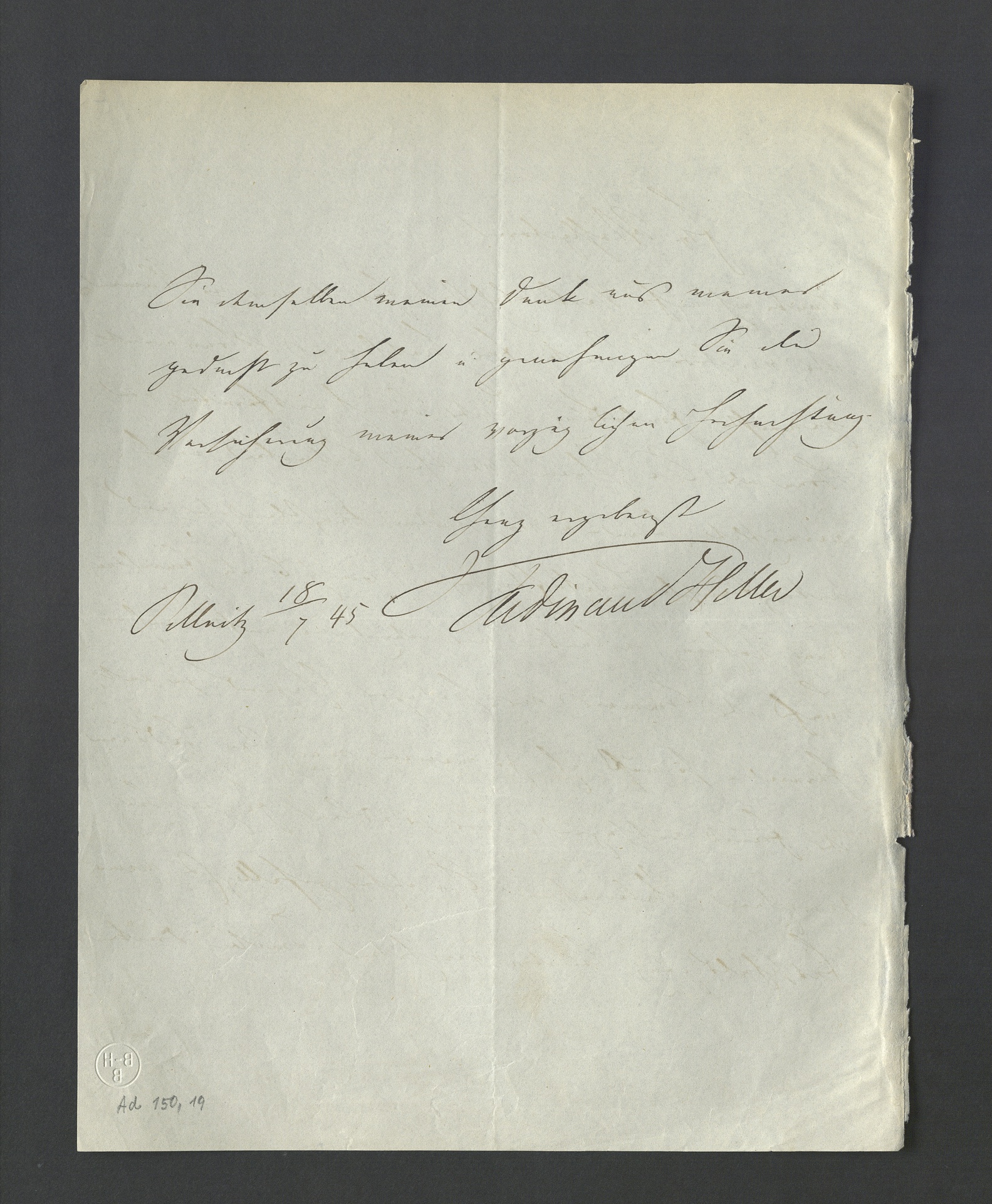 Ferdinand Hiller, Brief an Heinrich Carl Breidenstein in Bonn, Pillnitz, 18. Juli 1845, Autograph