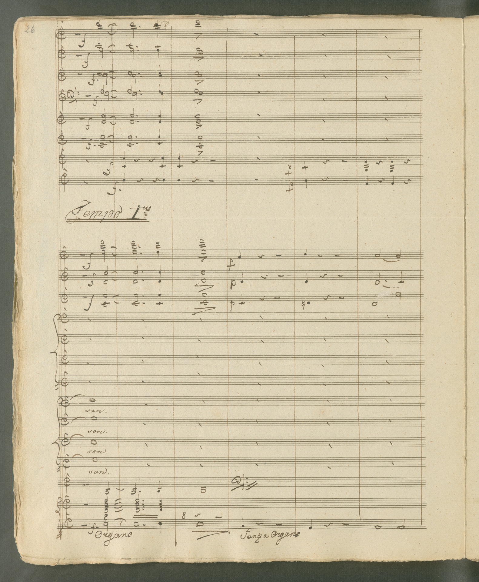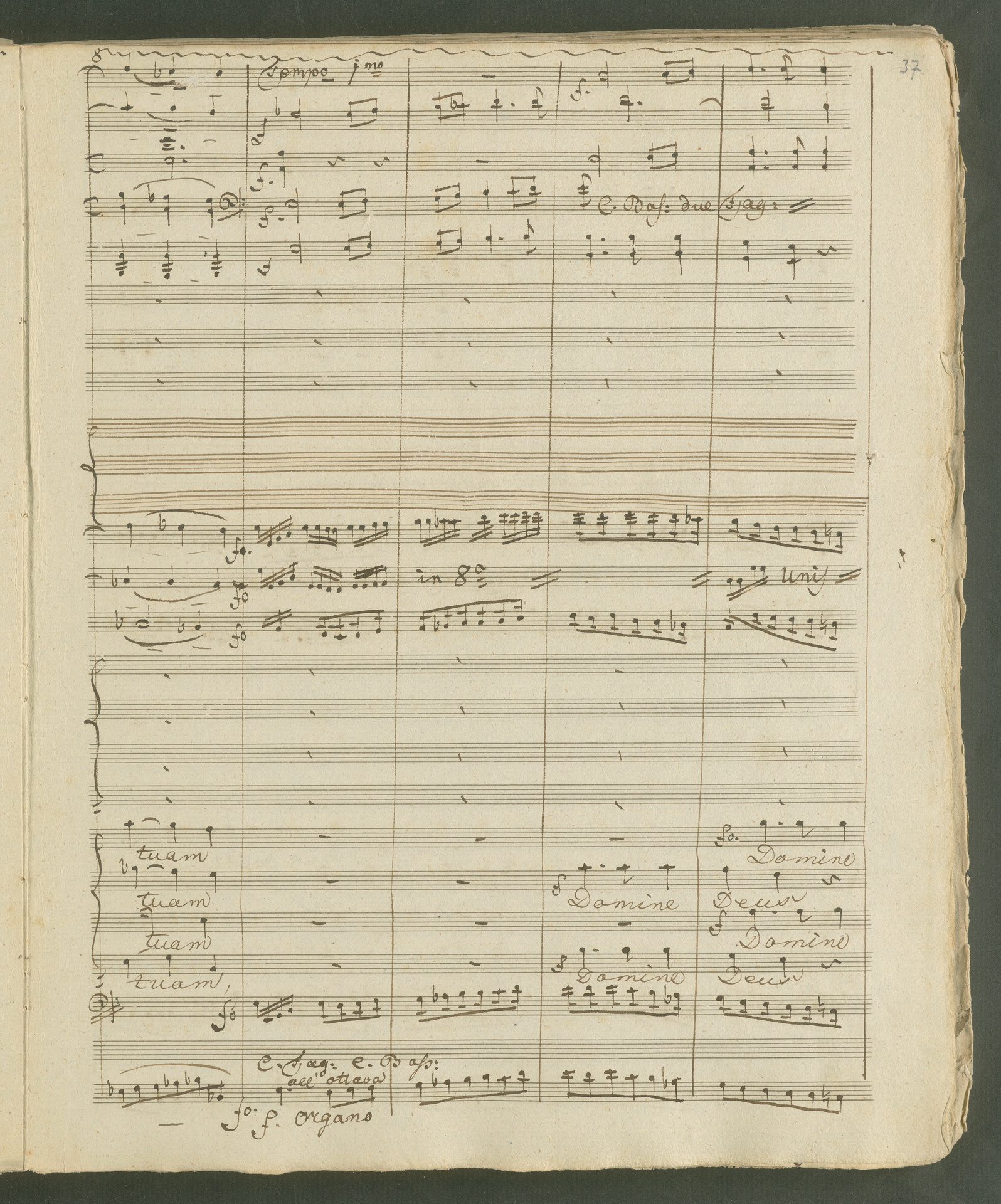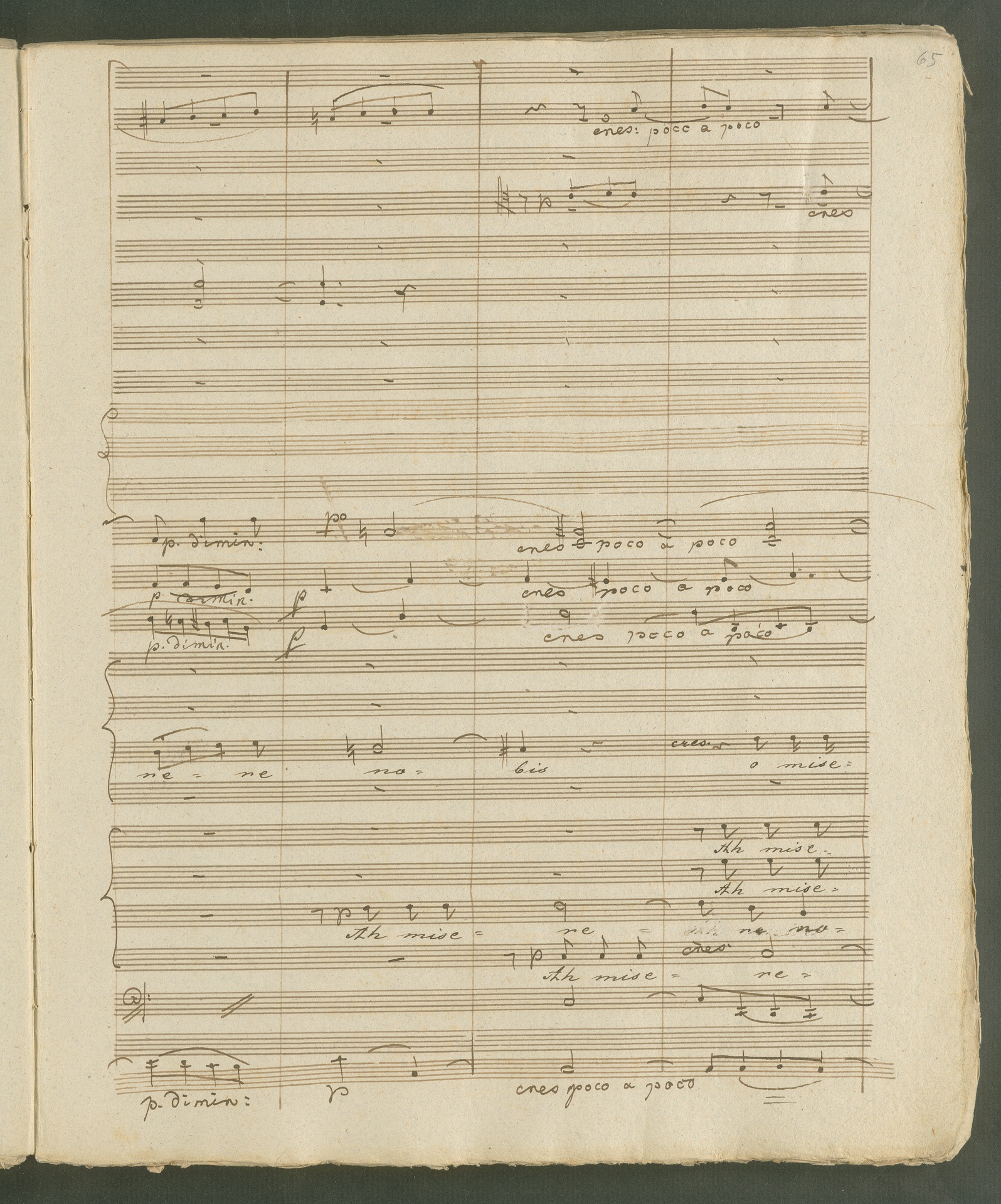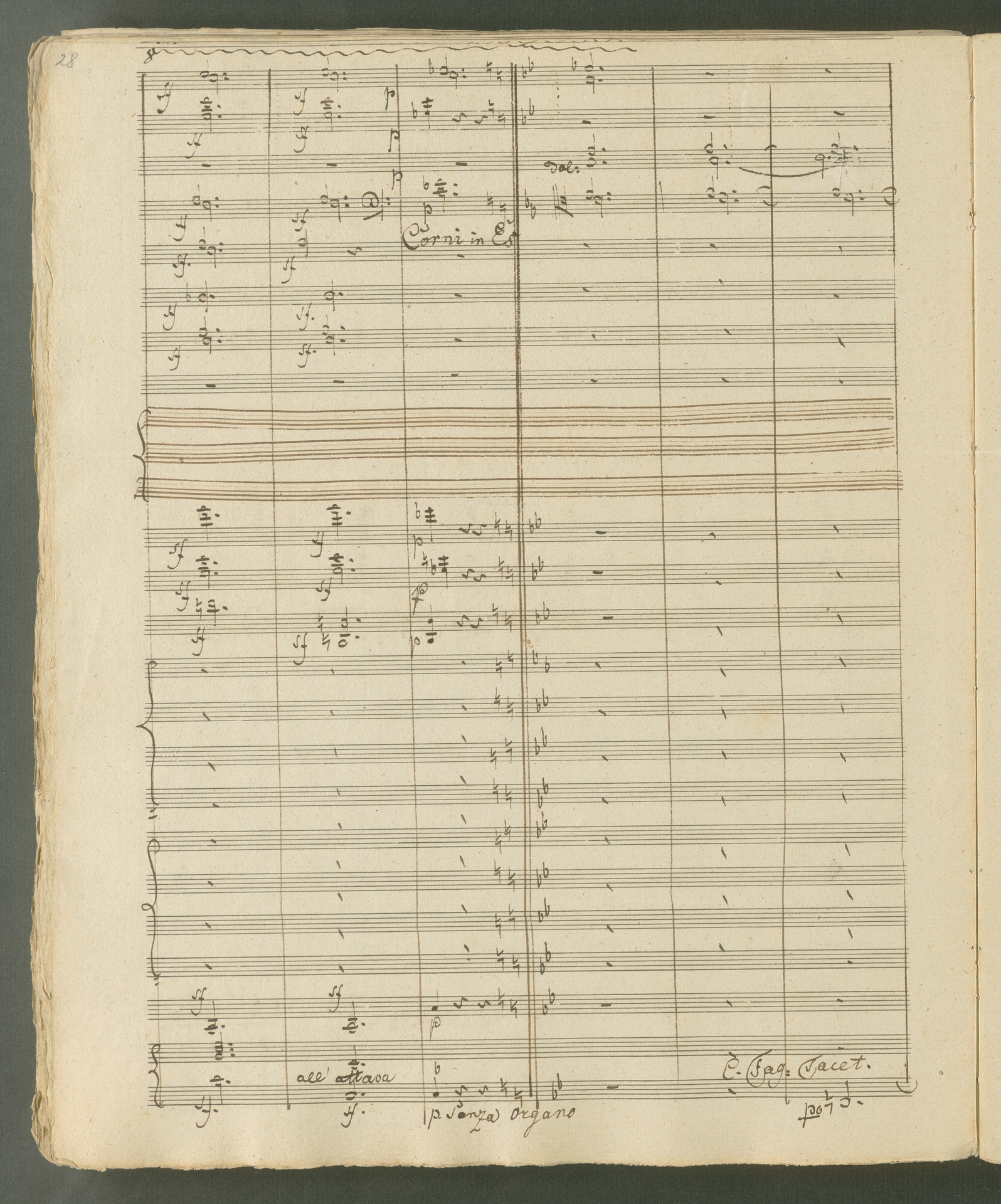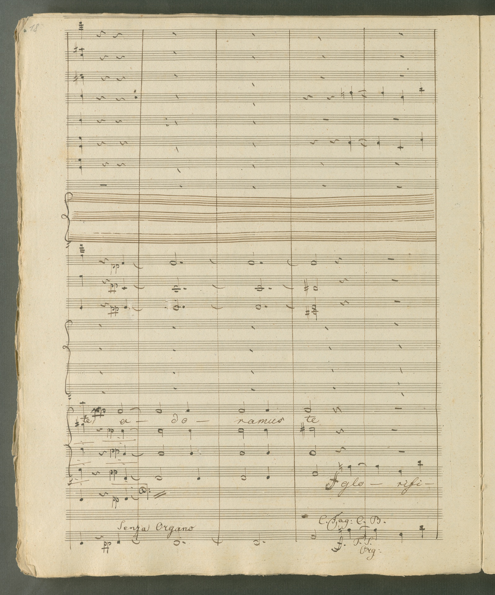Diese überprüfte Abschrift der ersten beiden Sätze Kyrie und Gloria aus der Missa Solemnis entstand in der zweiten Jahreshälfte 1823. Beethoven schickte die Teilabschrift am 9. April 1825 zu seinem ehemaligen Schüler Ferdinand Ries nach Bonn. Die Messe sollte beim Niederrheinischen Musikfest des gleichen Jahres in Aachen aufgeführt werden, für das sich Ries sehr engagierte. "Kyrie u. gloria zwei der vorzüglichst. Stük sind ebenfalls schon (...) auf dem wege für sie" (BGA 1957. Beethoven an Ferdinand Ries in Bonn, Wien, 9. April 1825), schrieb Beethoven im zugehörigen Begleitbrief an Ries. Allerdings wurde die Messe schließlich doch nicht ins Programm genommen: Die Sendung traf zu spät bei Ries ein als dass sie noch hätte vernünftig geprobt werden können. (J.R.)
