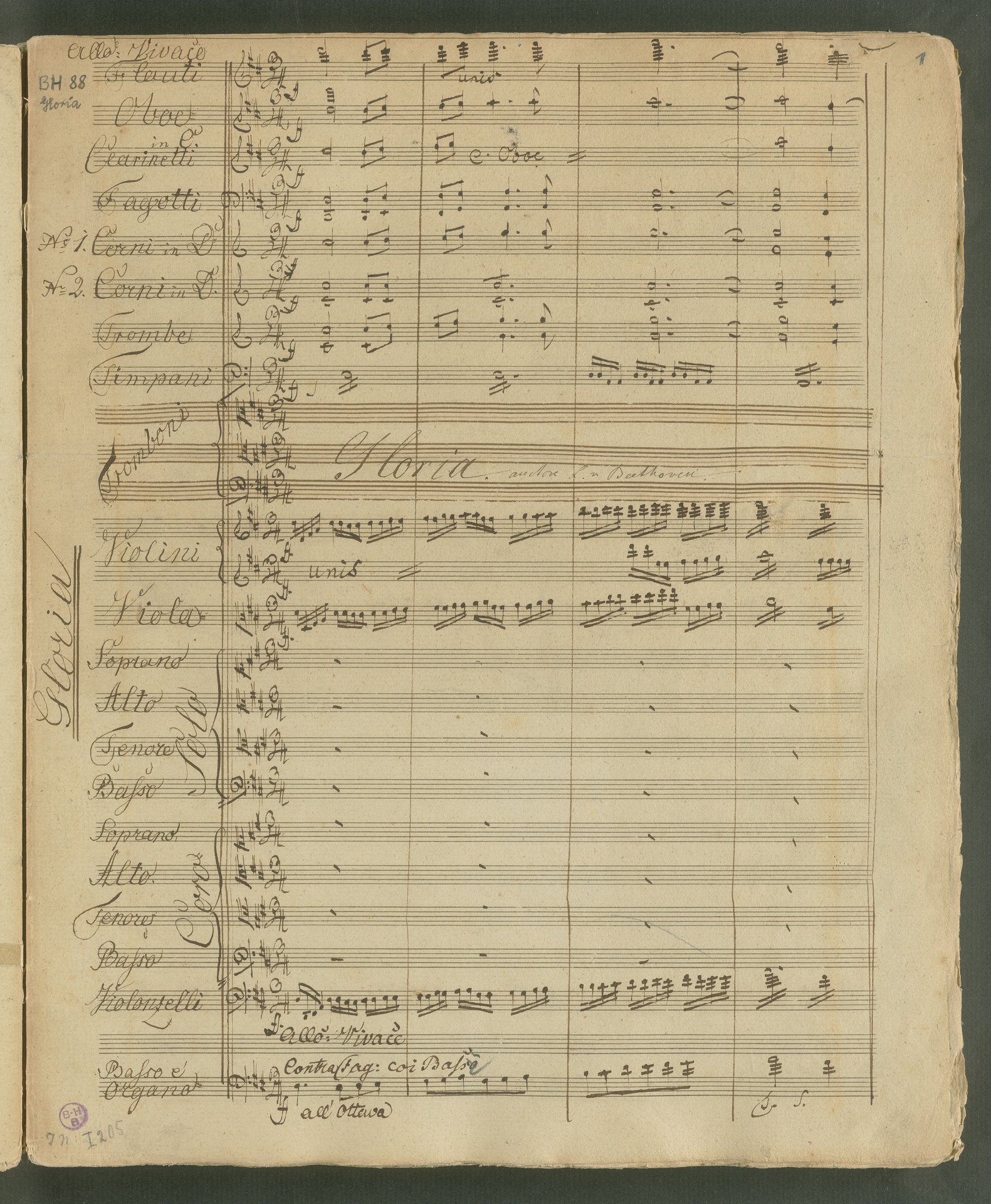 Ludwig van Beethoven, Messe für vier Solostimmen, Chor, Orchester und Orgel (D-Dur) op. 123 (Missa solemnis), Kyrie und Gloria, Partitur, Überprüfte Abschrift