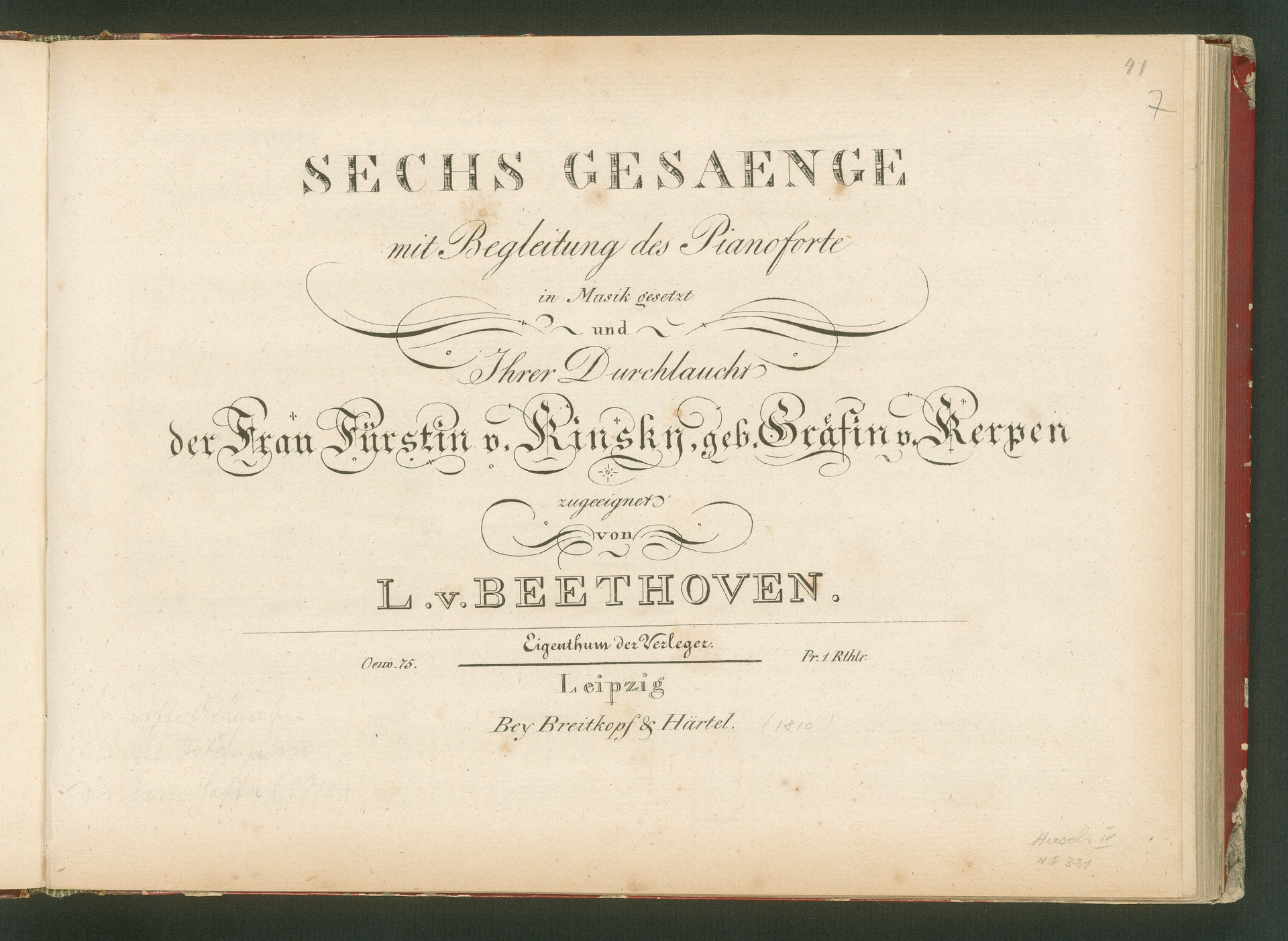 Ludwig van Beethoven, Gesänge für Singstimme und Klavier op. 75, 1-6, Breitkopf und Härtel, 1564