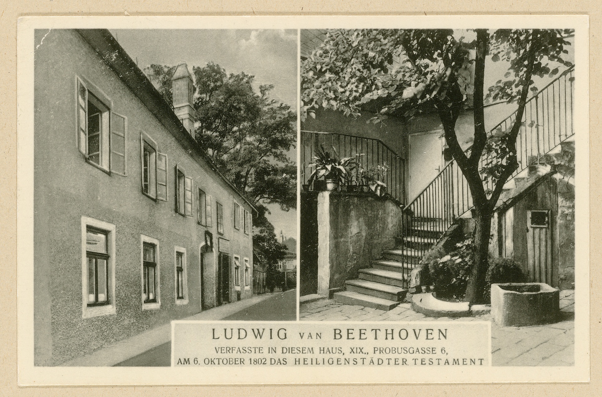 Wien, Heiligenstadt, Probusgasse 6, Wohnung von Ludwig van Beethoven, Hofansicht und Gartenansicht - Fotografie von O. Kantner, um 1960