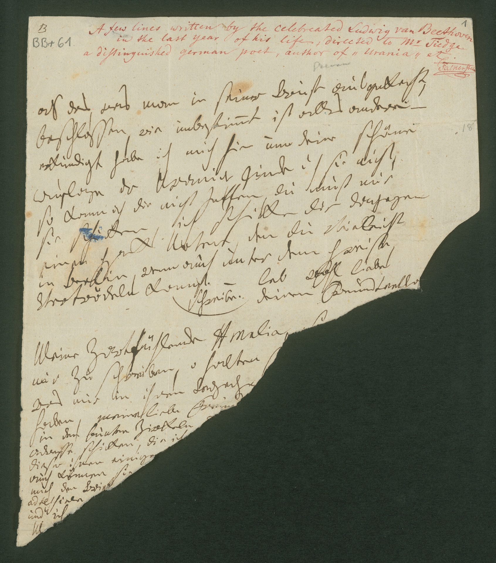 Ludwig van Beethoven, Brief an Christoph August Tiedge und Amalie Sebald in Berlin, Wien, 11. Oktober 1811, Autograph, Fragment