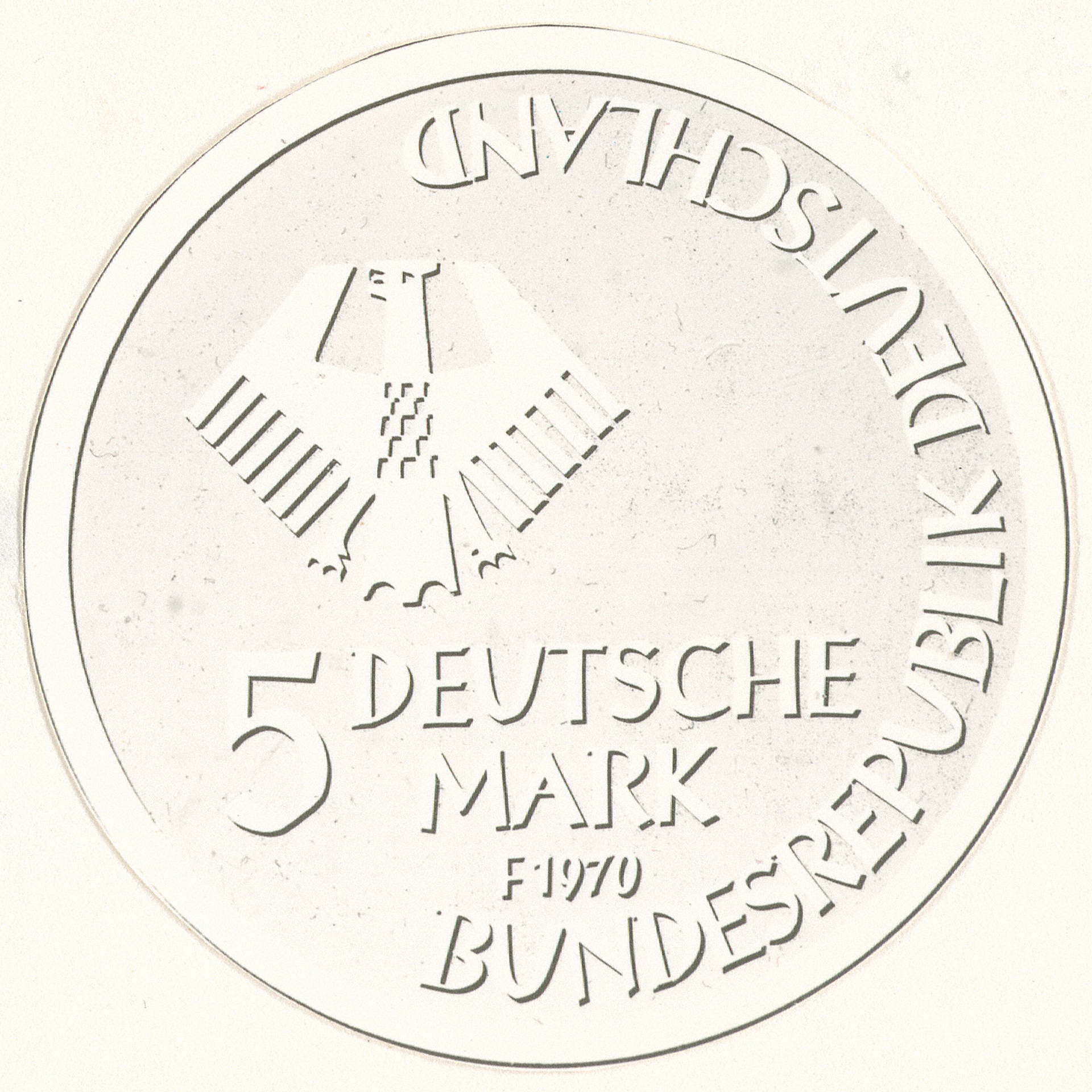 Entwurf für eine Beethoven-Gedenkmünze über 5 Deutsche Mark, 1969 - Fotografie eines nicht bezeichneten Modells